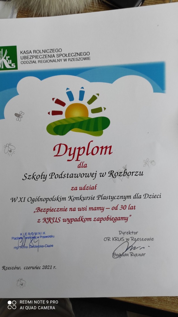 Uczeń klasy III, Jakub Maga, zdobył II miejsce w Ogólnopolskim Konkursie Plastycznym dla Dzieci "Bezpiecznie na wsi mamy - od 30 lat z KRUS wypadkom zapobiegamy". Serdecznie gratulujemy!!!
