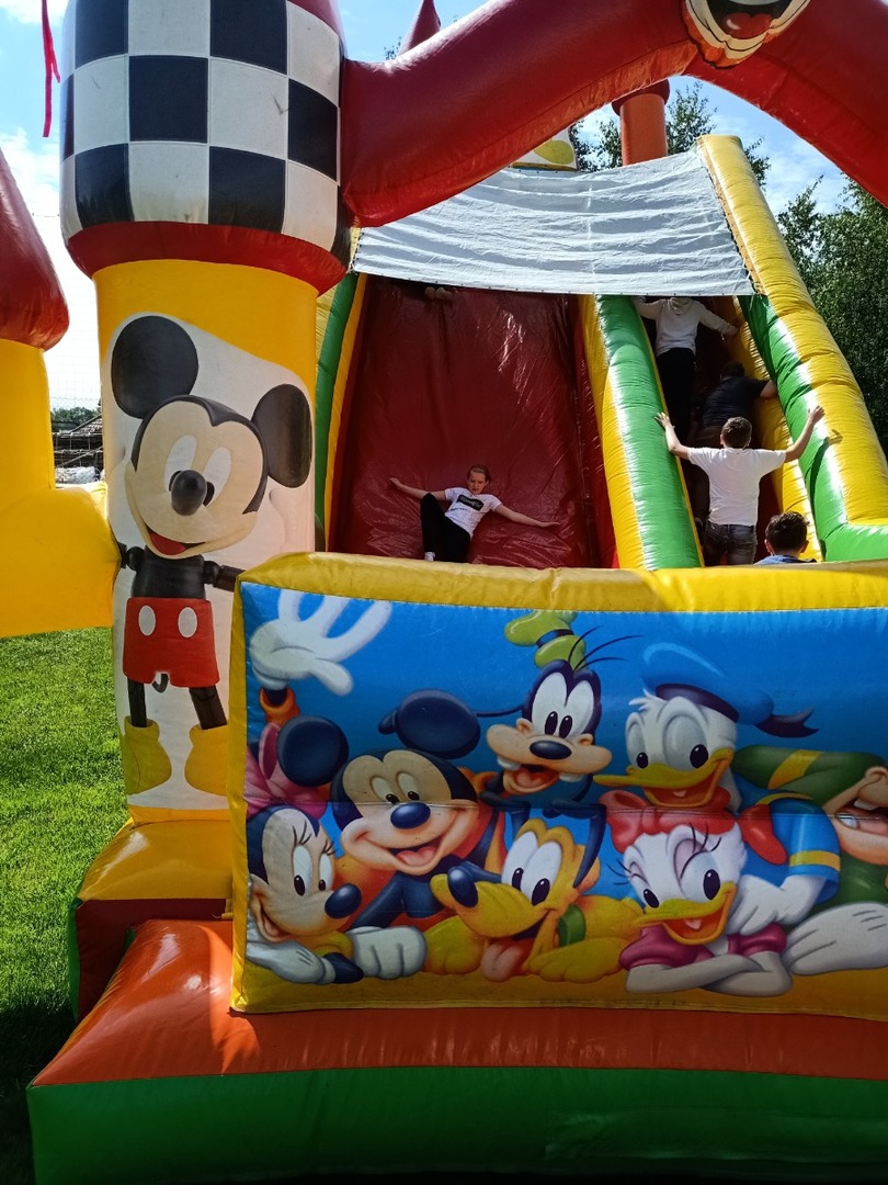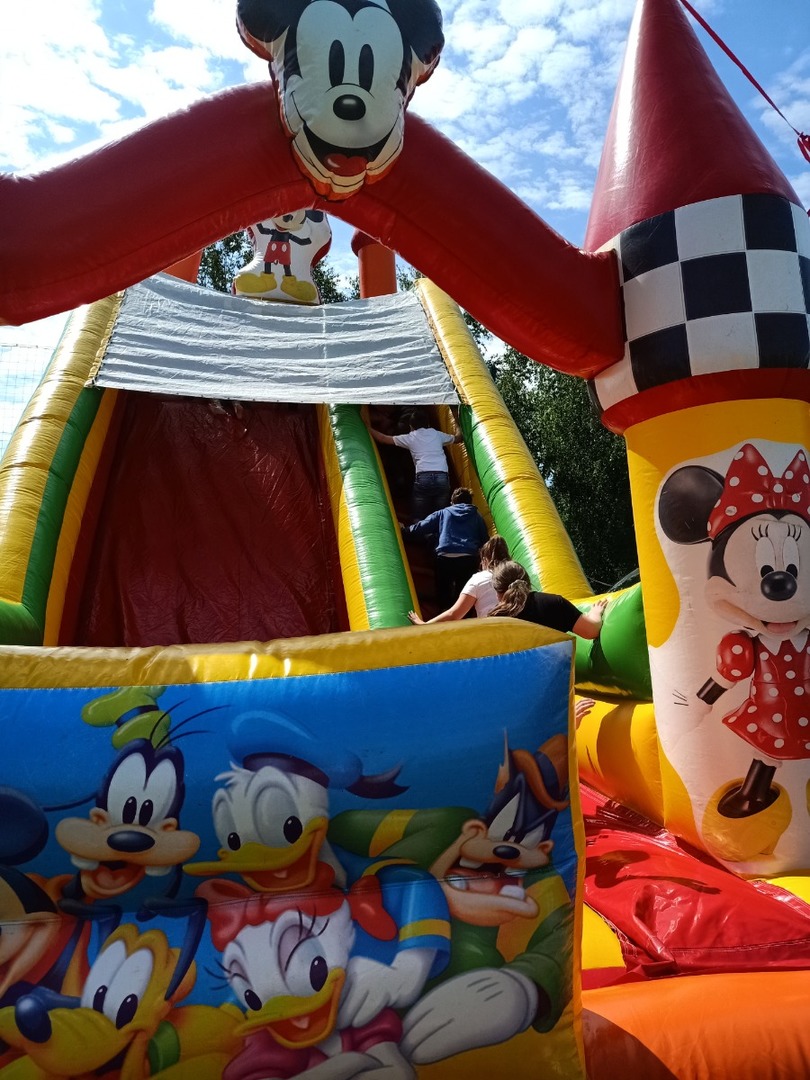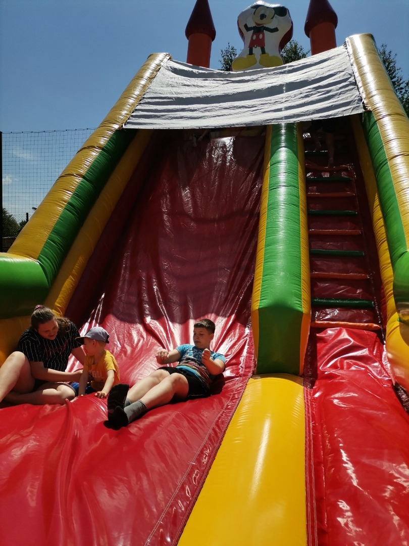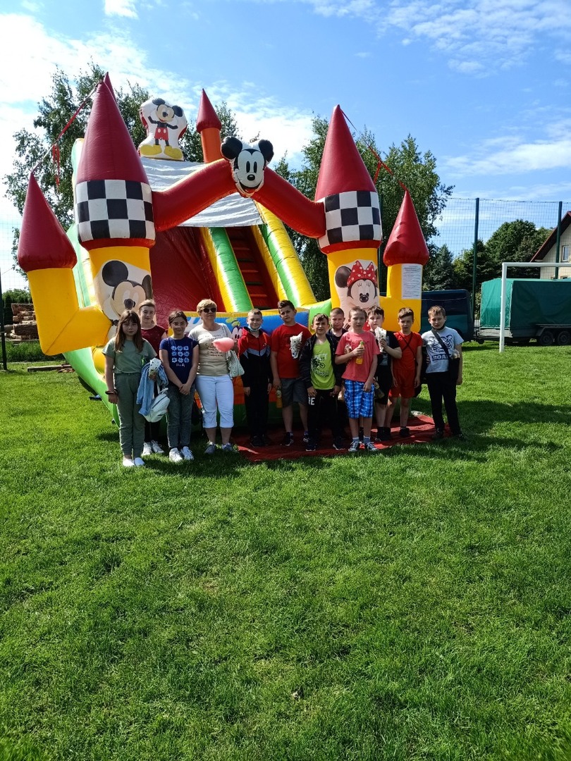 w trudnym czasie pandemii celebrować radosne święto wszystkich Dzieci. Piękna, słoneczna pogoda zachęciła do korzystania z przygotowanych form rozrywki - na zjeżdżalniach, placu zabaw, boisku sportowym. Nie tylko „maluchy” miały frajdę, że mogą poszaleć, ale i starsi przypomnieli sobie, że bawić się można zawsze, niezależnie od wieku. Mimo, iż ma się „naście” lat, to przecież w każdym tkwi coś z dziecka. Uczniowie starszych klas chętnie więc korzystali z przygotowanych atrakcji.