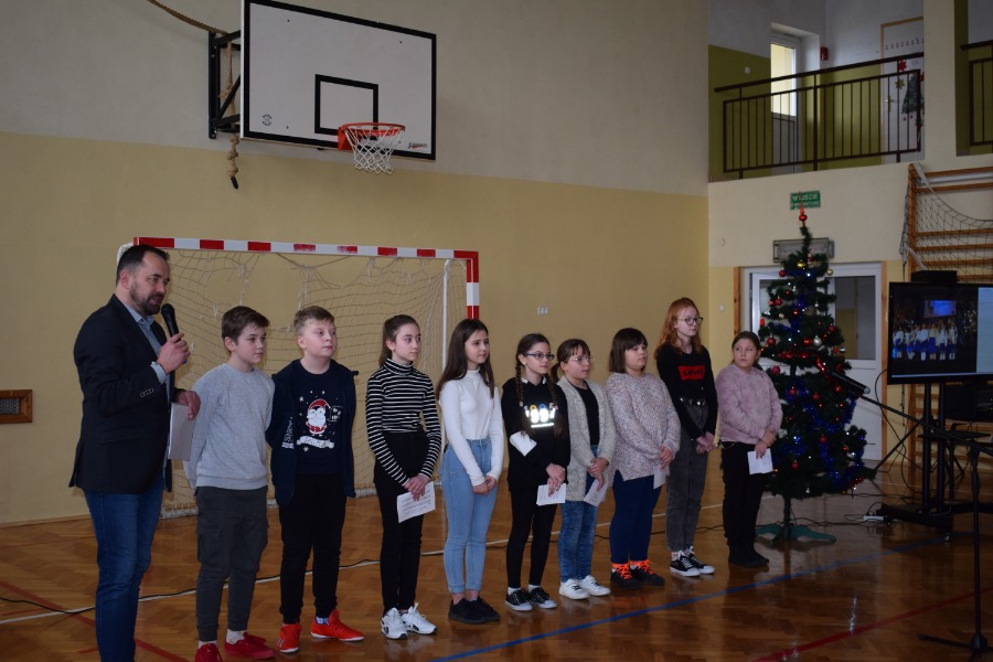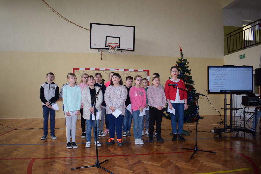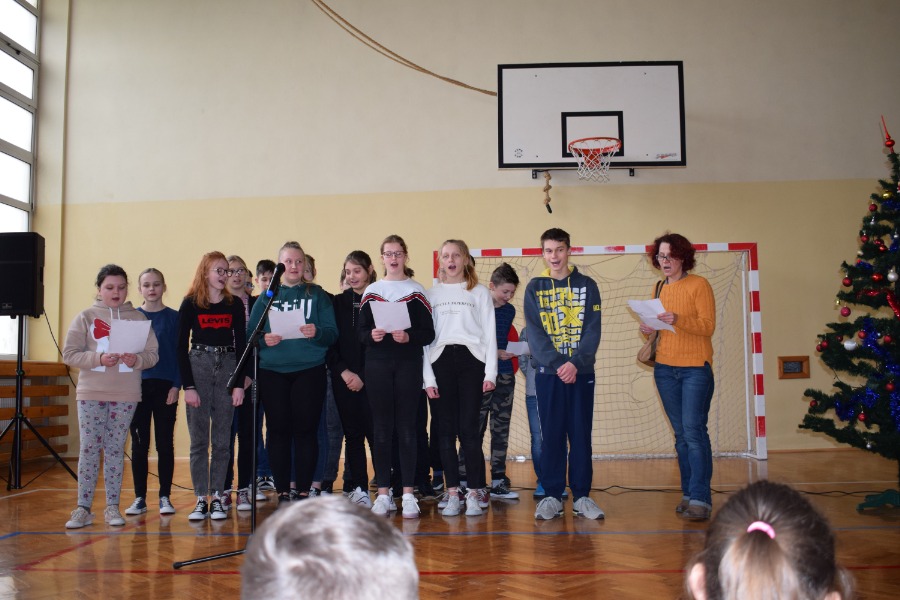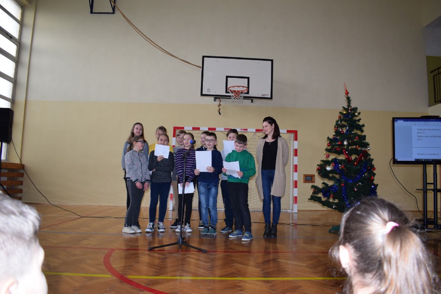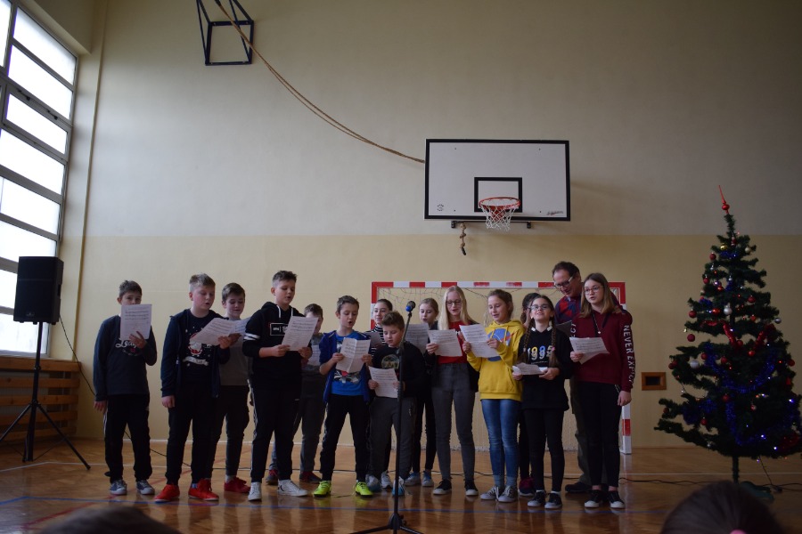 Podczas apelu, Pan Dyrektor poinformował nas o wprowadzeniu nowej tradycji szkolnej, którą będzie prezentowanie naszych umiejętności artystycznych przed rodzicami. W tym roku, rozpoczęliśmy od śpiewania kolęd. Każda z klas, wraz z wychowawcą zaśpiewała wybraną przez siebie kolędę lub pastorałkę. Oczywiście wszyscy z radością włączali się we wspólny śpiew. Gdy występy dobiegły końca uczniowie w pozytywnym nastroju wrócili na zajęcia lekcyjne.