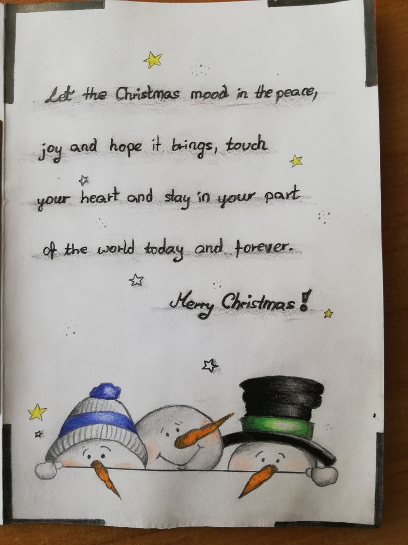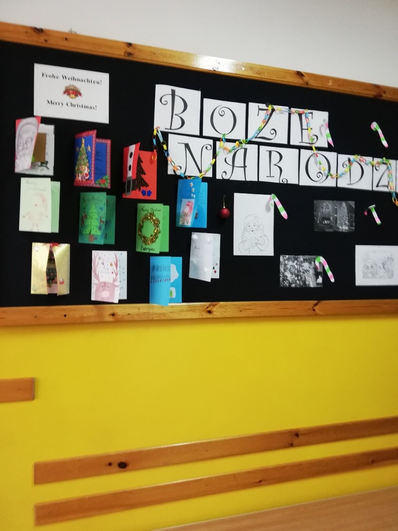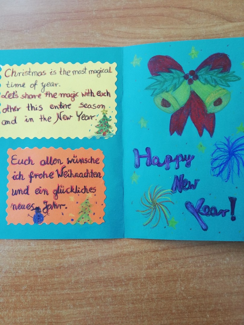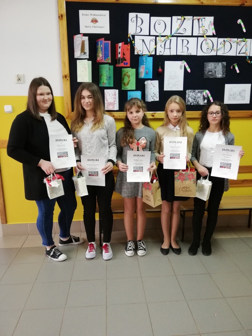 Chcąc podtrzymywać ten przepiękny zwyczaj, a przy tym rozwijać umiejętności językowe uczniów, nauczyciele języka niemieckiego i angielskiego zorganizowali konkurs „Kartka Bożonarodzeniowa w Języku Obcym”. Wszyscy chętni uczniowie mogli napisać życzenia w języku niemieckim i angielskim na zaprojektowanej przez siebie kartce świątecznej. Rozstrzygnięcie konkursu odbyło się 20 grudnia 2019 r.