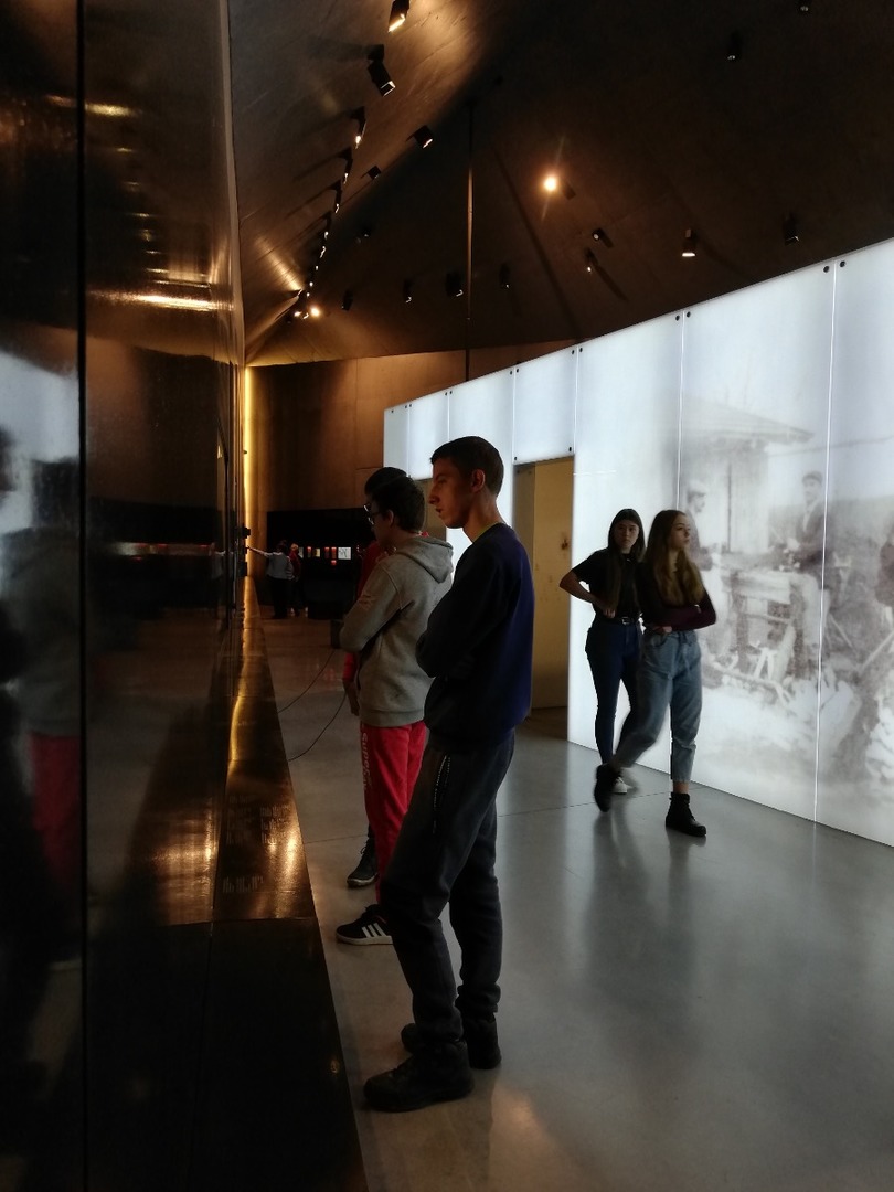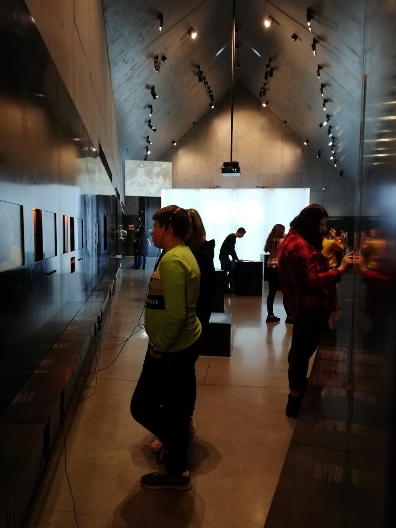Po obiekcie muzealnym oprowadził nas przewodnik, który przybliżył historię Żydów i Polaków w latach 1939 -1945 podczas okupacji niemieckiej. Zwrócił uwagę na jeden z napisów, który mówił, że dla Polaków czas ten był czasem wojny i okupacji, zaś dla Żydów - końcem świata.
