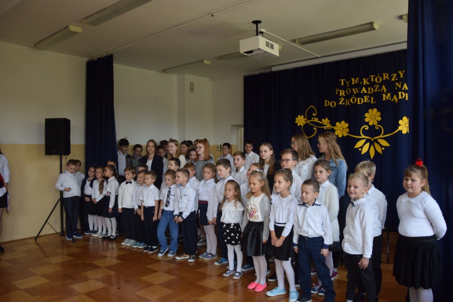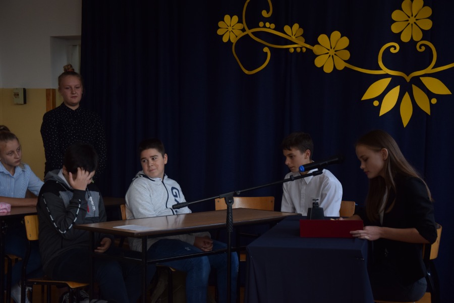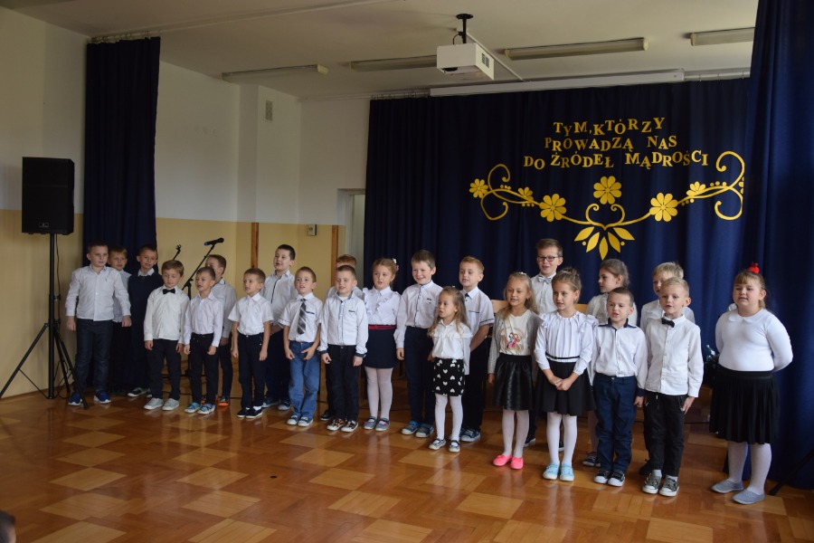Z okazji Święta Edukacji Narodowej w dniu 11.10.2019 r. odbyła się uroczysta akademia przygotowana przez uczniów klasy siódmej, jak i również naszych młodszych kolegów.