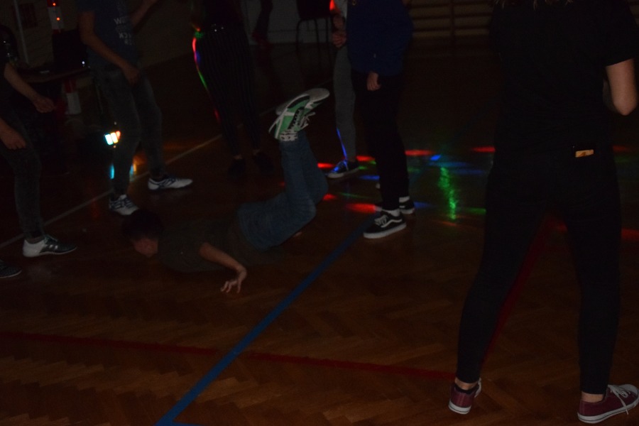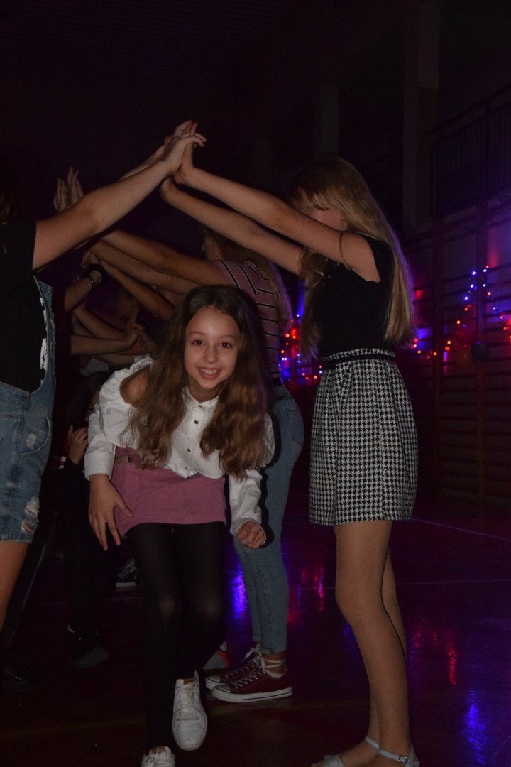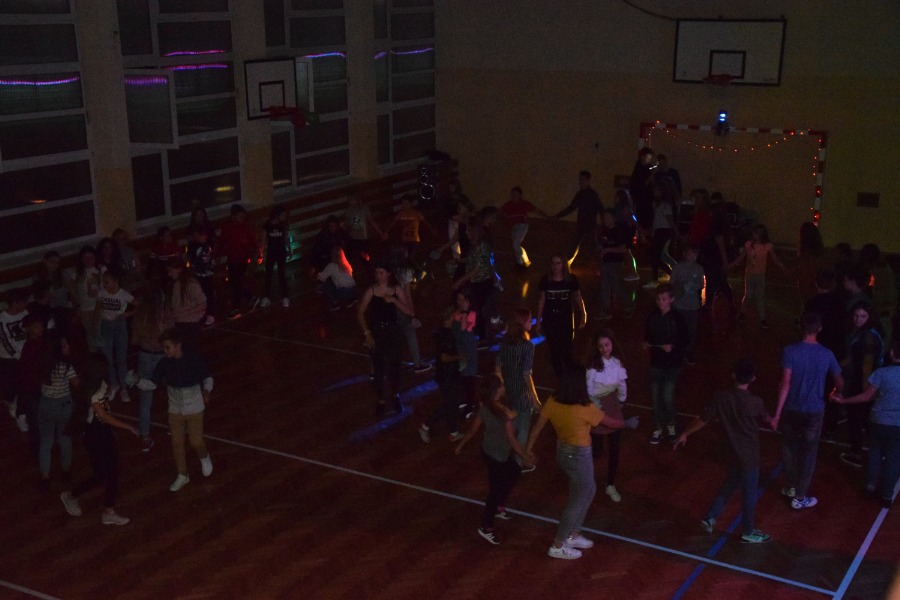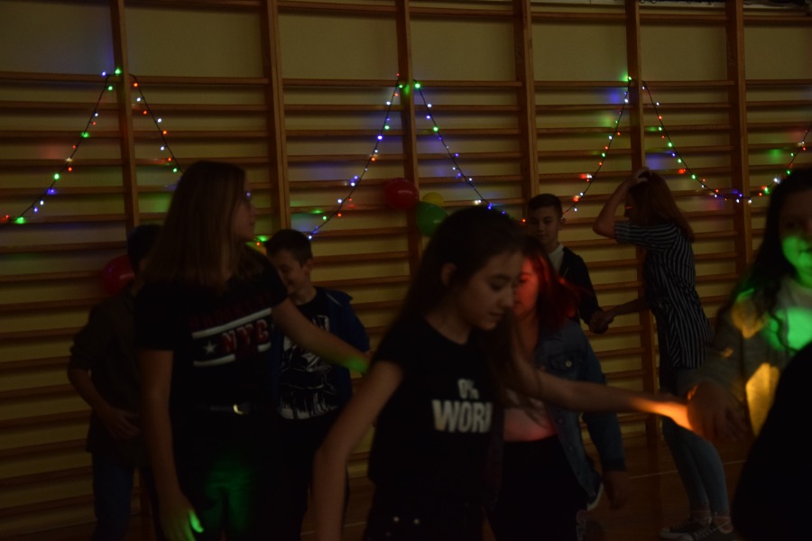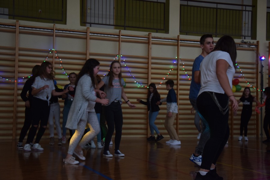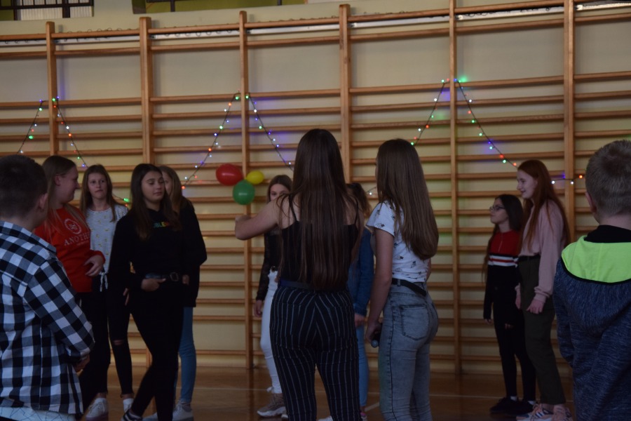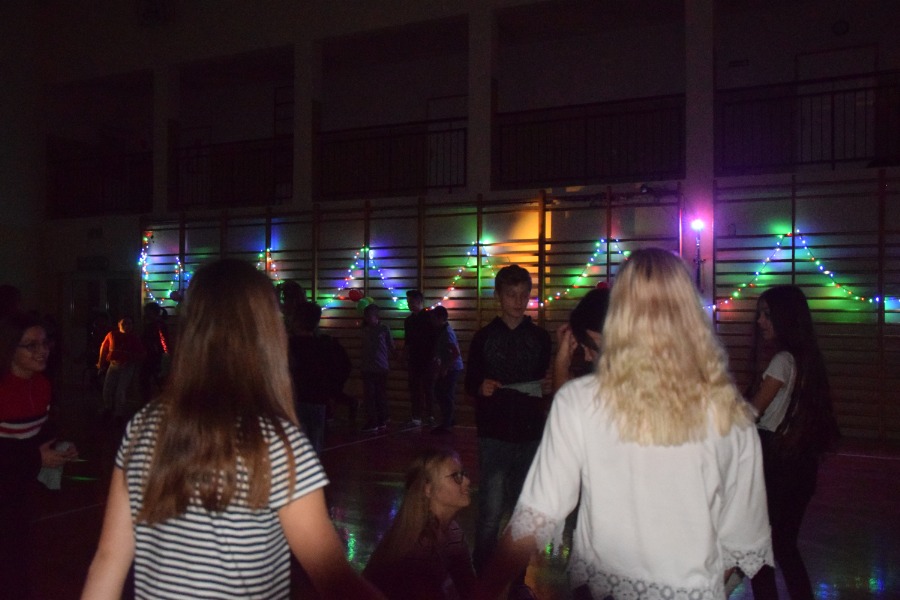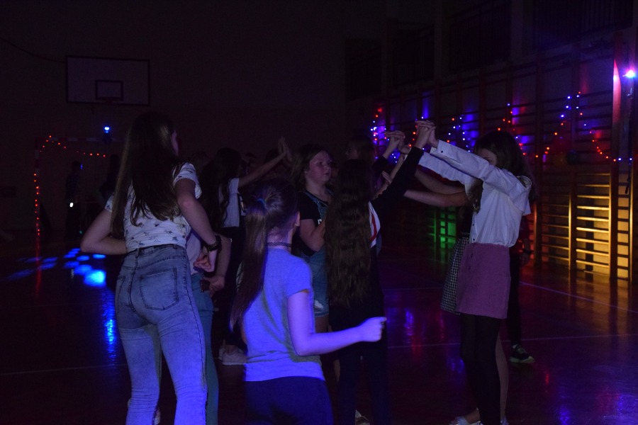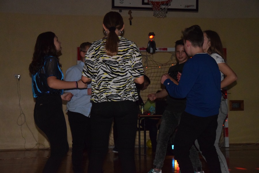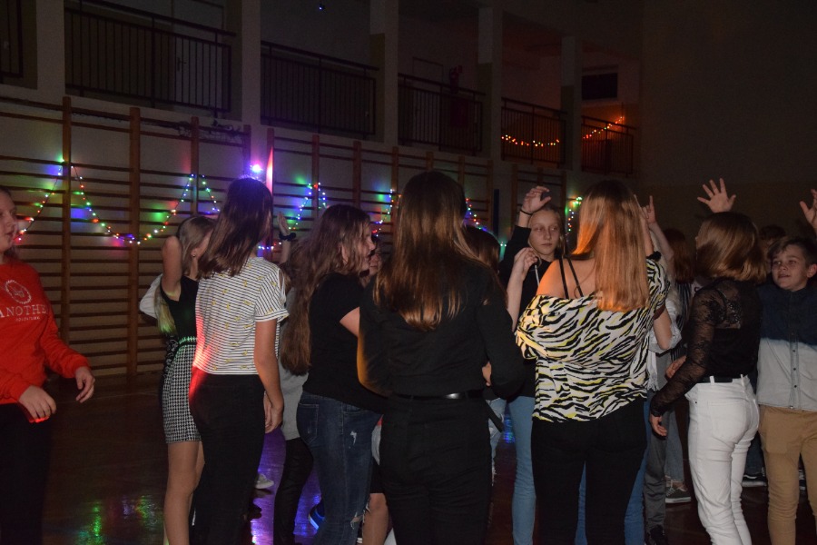 Obecni na niej byli uczniowie od klas V, aż po VIII. Młodzież na początku zabawy nie była chętna do wspólnego tańca, jednakże zmieniło się to gdy z głośników dało się usłyszeć ,,Belgijkę". Nie zabrakło również tradycyjnej ,,chusteczki". Po kilku utworach wszyscy dołączyli się do wspólnej zabawy.