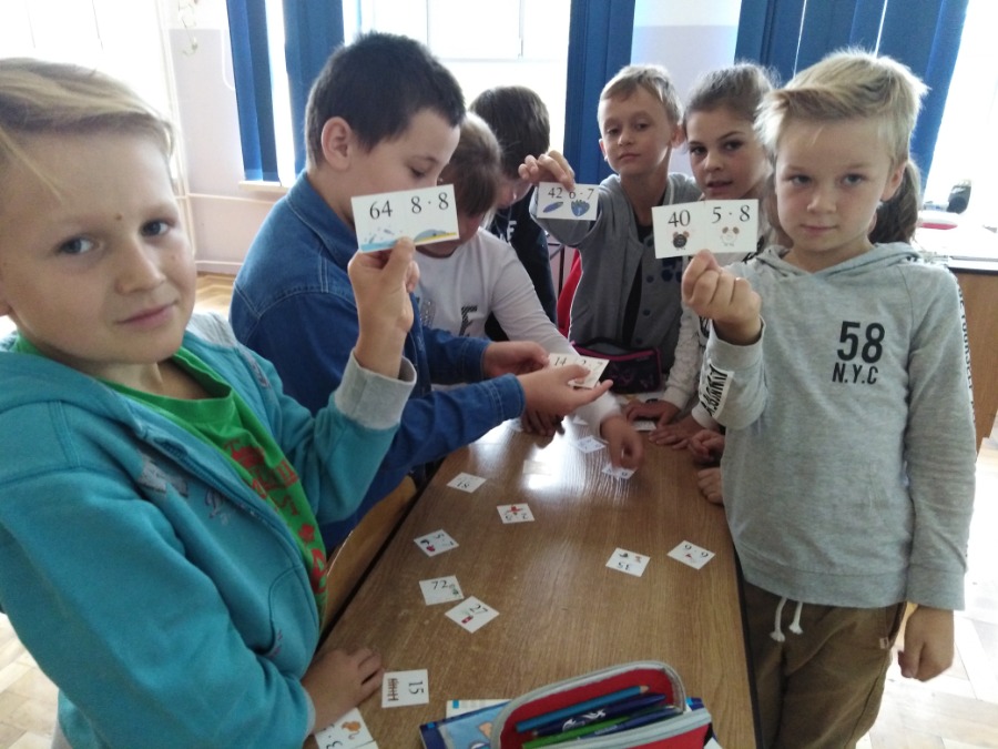 Klasa II z racji iż nie zna jeszcze tabliczki mnożenia układała w tym dniu puzzle obrazkowe z tabliczką mnożenia świetnie się przy tym bawiąc i ćwicząc myślenie kreatywne.