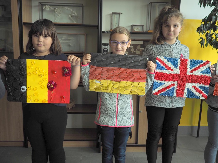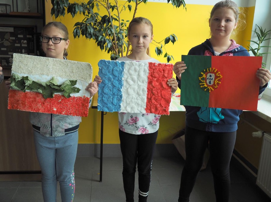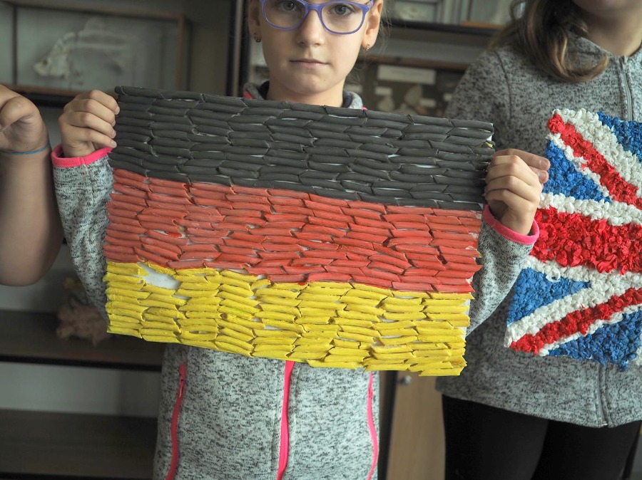 Nauczyciele języka niemieckiego i angielskiego zorganizowali konkurs, który polegał na wykonaniu dwóch flag europejskich przez poszczególne klasy. Uczniowie wykonali piękne i pomysłowe pracę. Przygotowanie flag sprawiło wszystkim wiele radości, bo było pomysłowo i zabawnie.