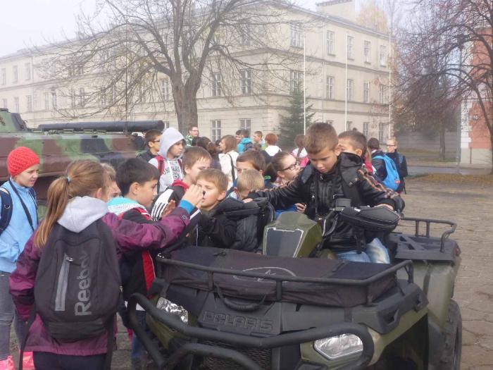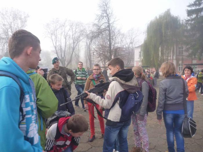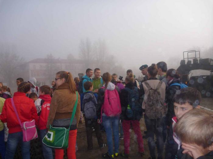 Uczniowie klasy IV i VI SP oraz I gim. 25.10.2013 r. wzięli udział w uroczystych obchodach 95 rocznicy utworzenia Garnizonu Przemyśl oraz Święta Jednostki Wojskowej 5 Batalionu Strzelców Podhalańskich. Dzieci i młodzież naszej szkoły mogła z bliska zobaczyć blaski i cienie służby wojskowej, a także dotknąć i obejrzeć sprzęt oraz uzbrojenie będące na wyposażeniu 5 Batalionu Strzelców Podhalańskich. Mieliśmy też okazję skosztować, jak smakuje słynna wojskowa grochówka gotowana w wielkich kotłach. Nie były to jedyne atrakcje, które organizator wycieczki dla nas przygotował.