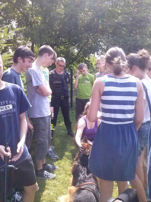 Atrakcją spotkania było wejście do wozu Ochrony Kolei, pokaz sztuczek Szarika - wytresowanego psa oraz założenie stroju służbowego. Pamiątką dla młodszych dzieci były książeczki oraz ciekawe gadżety.