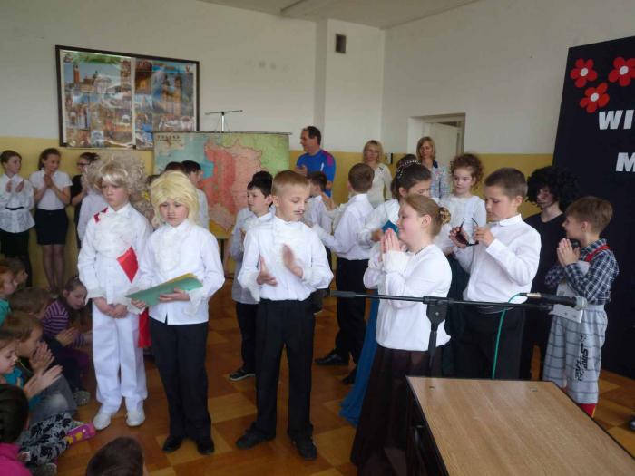 30.04.2014r. odbyła się akademia z okazji rocznicy uchwalenia Konstytucji 3 Maja. Uczniowie szkoły podstawowej w ciekawy sposób przypomnieli nam o wydarzeniach, które miały miejsce w Rzeczpospolitej w XVIII w. Usłyszeliśmy hymn narodowy oraz patriotyczne pieśni i piosenki. Cieszymy się, że mogliśmy razem wspominać uchwalenie Konstytucji i świętować w tym ważnym dla Polski dniu.