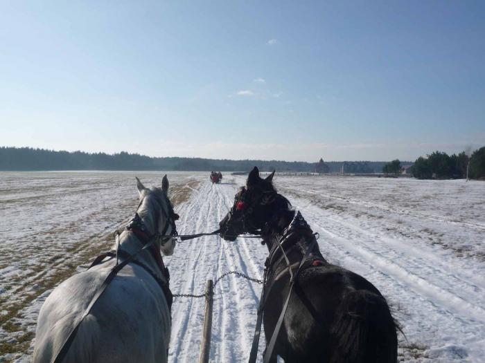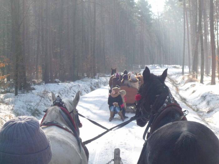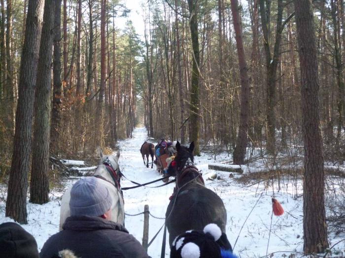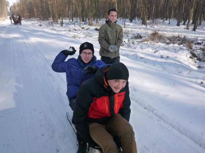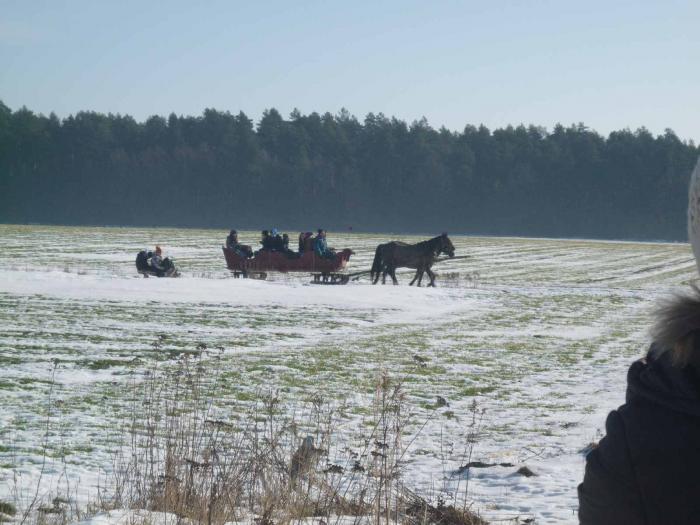 07.02.2014r. uczniowie klasy V SP, II gim i kilkoro uczniów z III gim. pojechało do Radawy na kulig. Około godziny 9:00 byliśmy na miejscu. Udaliśmy się do zagrody, gdzie mogliśmy zobaczyć małe dziki, barany, sarny i parę innych zwierząt. Później wszyscy zajęliśmy miejsca w saniach i ruszyliśmy do lasu. Największą atrakcją okazały się małe sanki, doczepione do dużych sań. Uczniowie chętnie na nie wsiadali, mimo iż wielokrotnie z nich spadali. W połowie trasy zatrzymaliśmy się i rozpoczęła się bitwa na śnieżki.