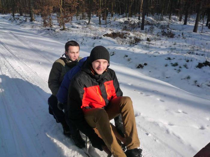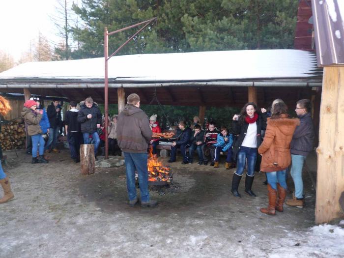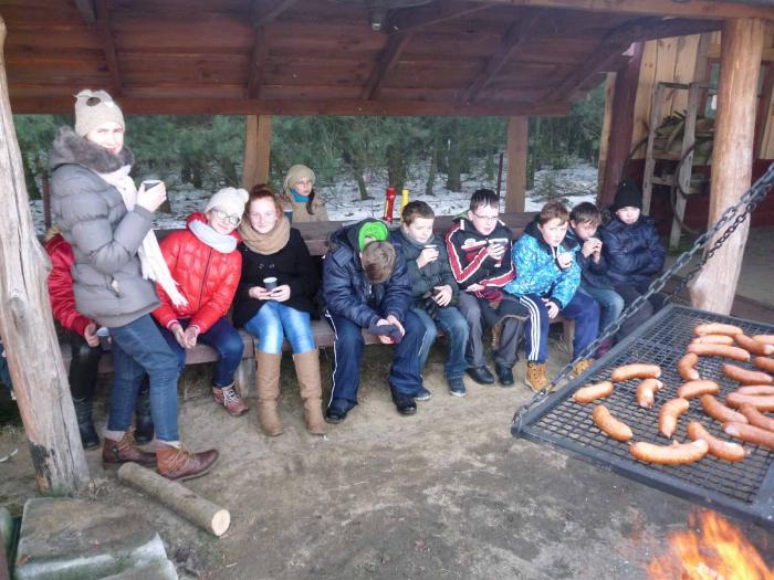 Cali przemoczeni wróciliśmy z kuligu, szybko jednak wysuszyliśmy się przy ognisku, nad którym piekły się już kiełbaski. Po wypiciu gorącej herbaty i zjedzeniu posiłku wróciliśmy do Rozborza.
