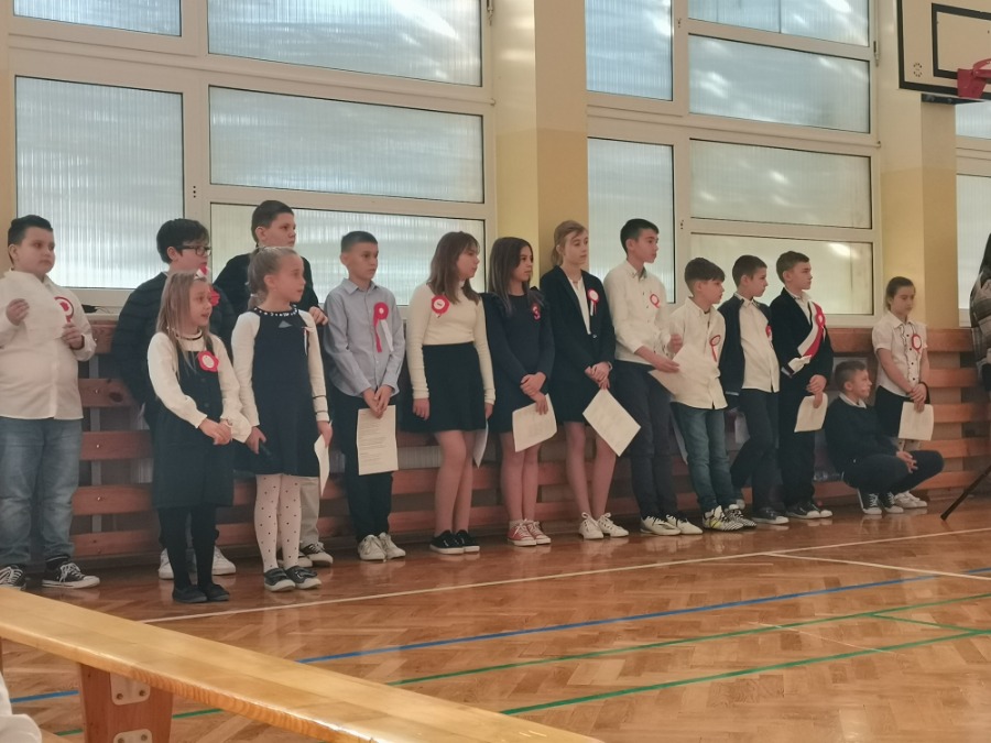 Akademię rozpoczęła się oczywiście od odśpiewania Hymnu Państwowego przez cała szkołę. Następnie uczniowie recytowali wiersze nawiązujące do historii Polski i tego święta. Przygotowali też pieśni patriotyczne, w wykonanie których włączyła się cała szkoła. Były również indywidualne występy wokalne oraz utwór „Biało- czerwona” wykonany przez przedszkolaków.