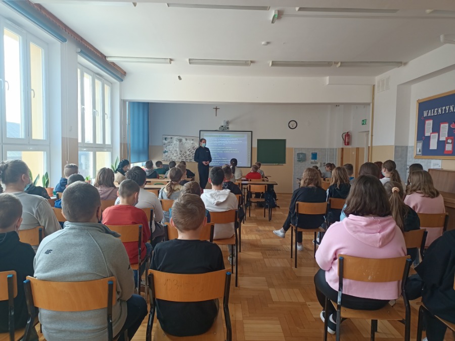 3 marca 2022 roku uczniowie naszej szkoły uczestniczyli w spotkaniu z Panem Policjantem.