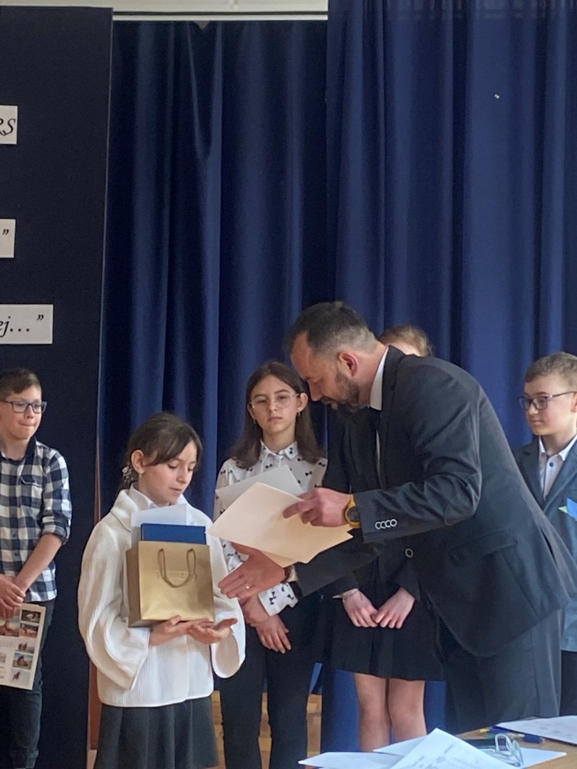 Jury konkursu w składzie: P. Dyrektor Paweł Krzyżanowski, P. Agnieszka Kruk i Pani Marta Stącel przyznało najlepszym recytatorom nagrody.