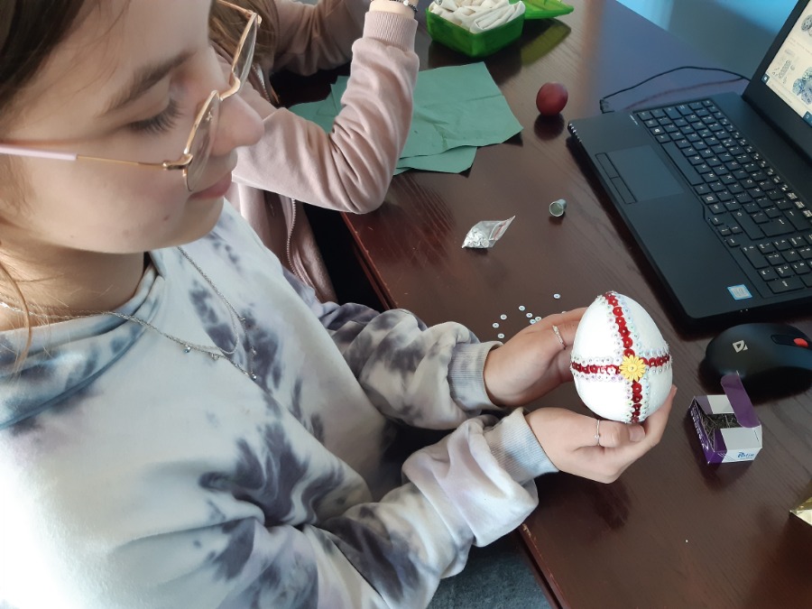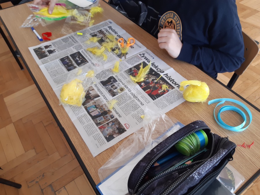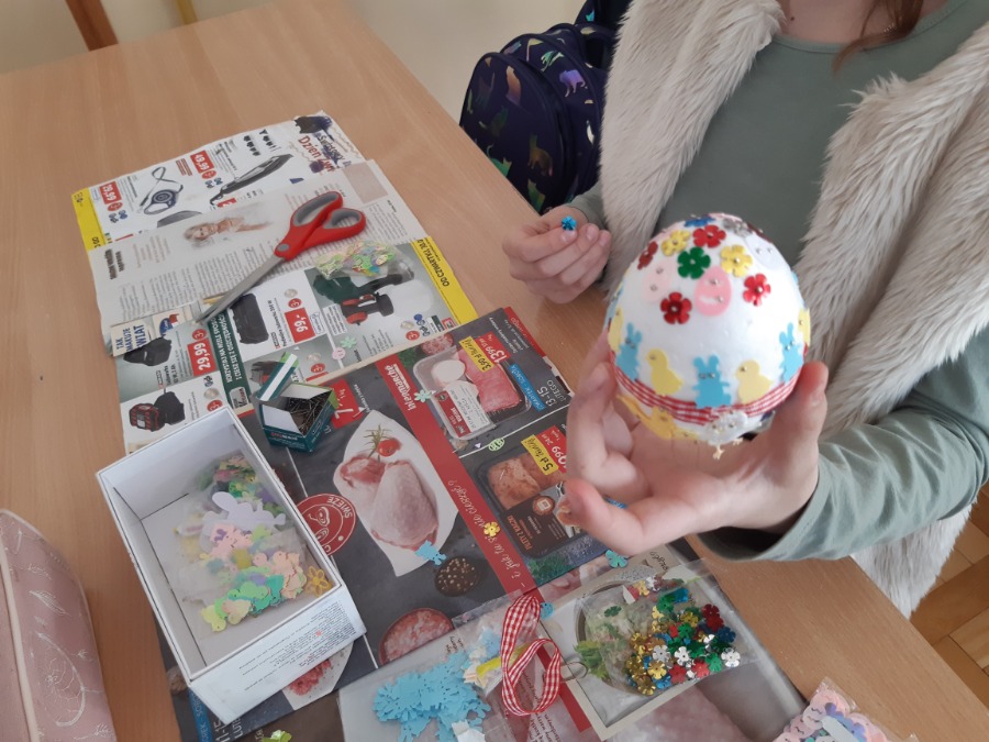 Część uczniów uczestniczyła w zajęciach papieroplastycznych podczas, których poznawali różne techniki papieroplastyczne i wykonywali prace techniczne z wykorzystaniem papieru np. ozdobne ramki na zdjęcia, pudełka, łabędzie origami, dekoracje świąteczne np. pisanki wielkanocne.