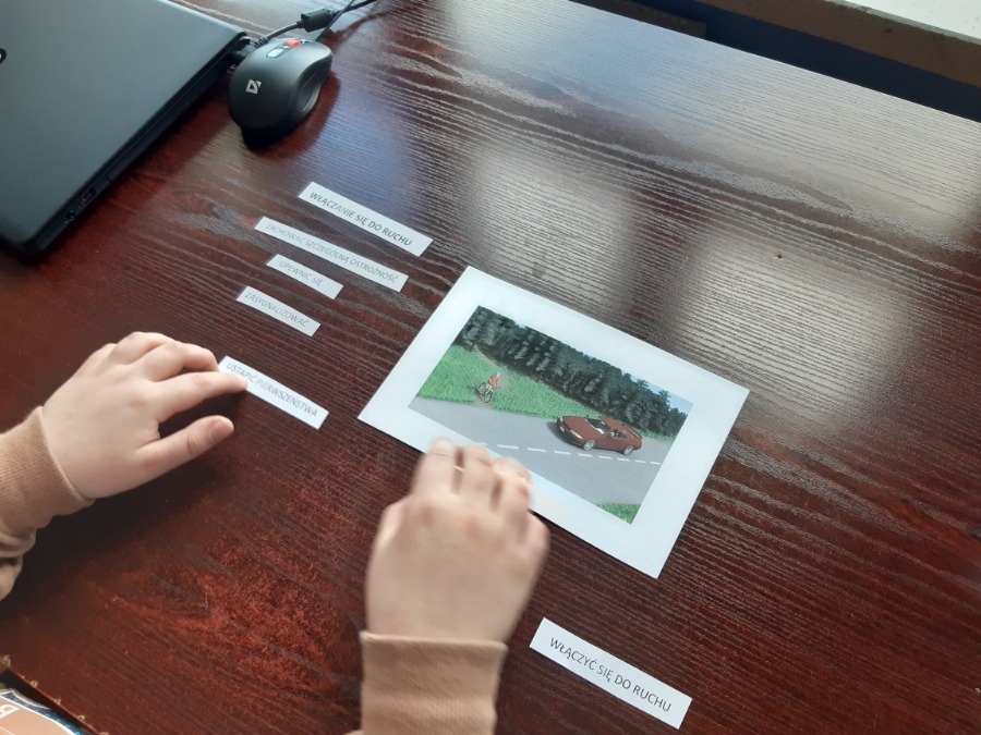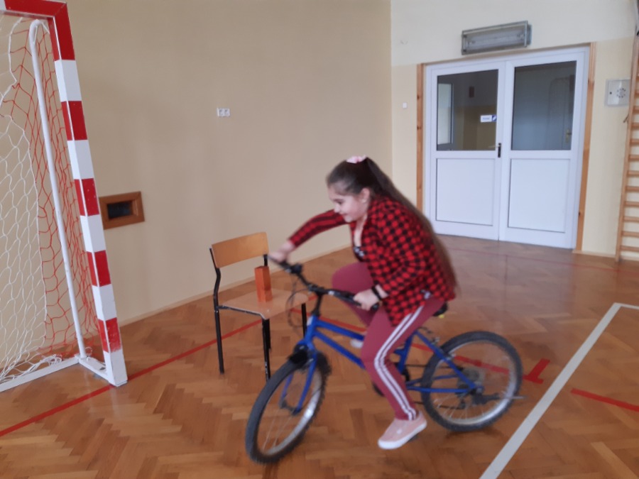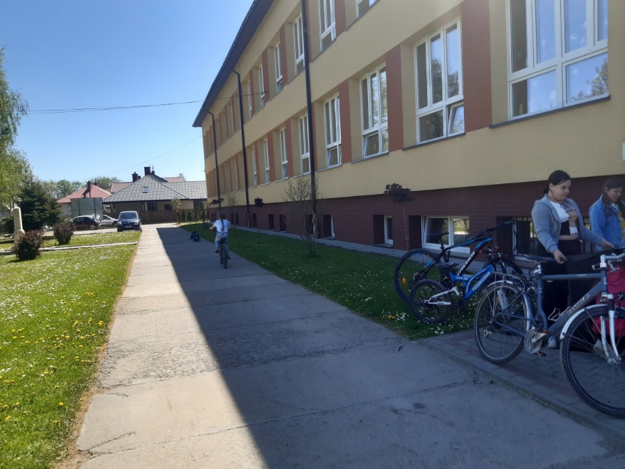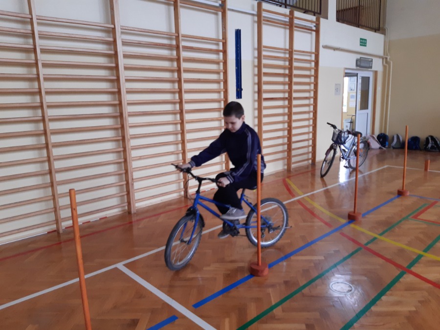 Zorganizowano zajęcia z wychowania komunikacyjnego podczas których uczniowie poznawali zasady poruszania się pieszego i rowerzysty po drodze. Szczególnie doskonalili przepisy ruchu drogowego wymagane do uzyskania karty rowerowej. Ćwiczyli, pod okiem nauczyciela, jazdę na rowerze po torze przeszkód oraz z wykorzystaniem poznanej wiedzy pokonywali manewry w ruchu drogowym. Uczniowie, pod koniec roku szkolnego, przystąpią do egzaminu na kartę rowerową.