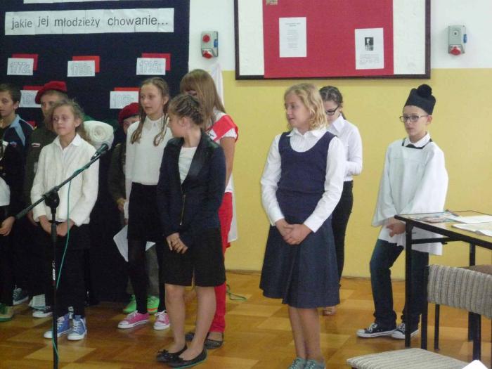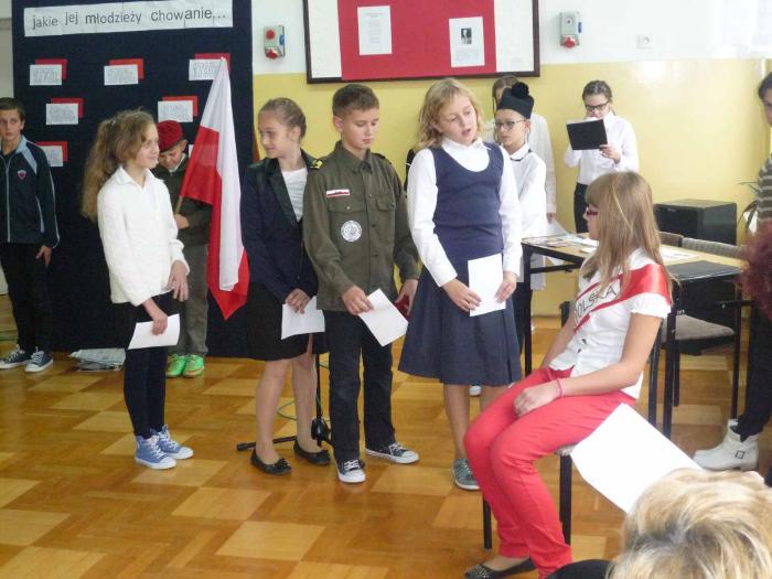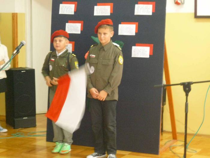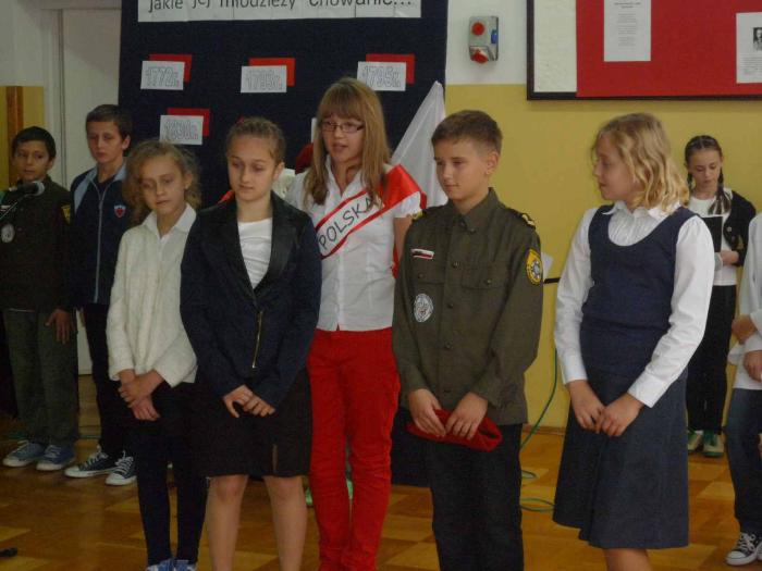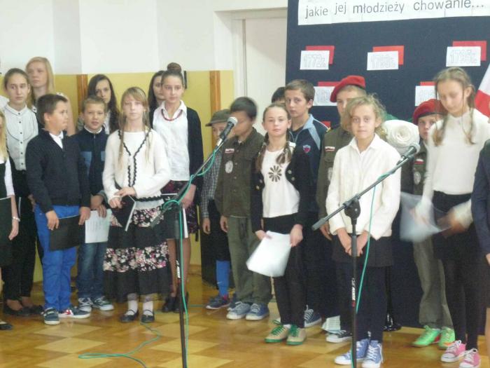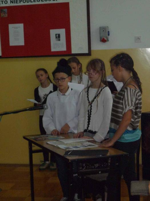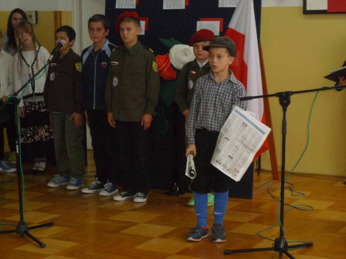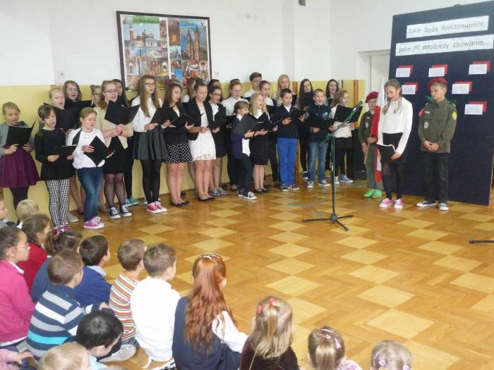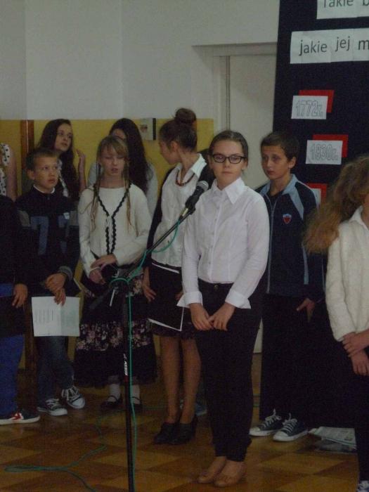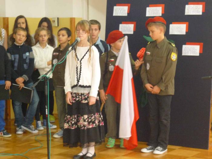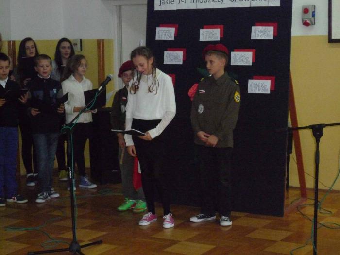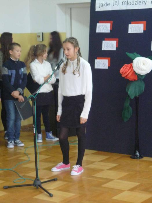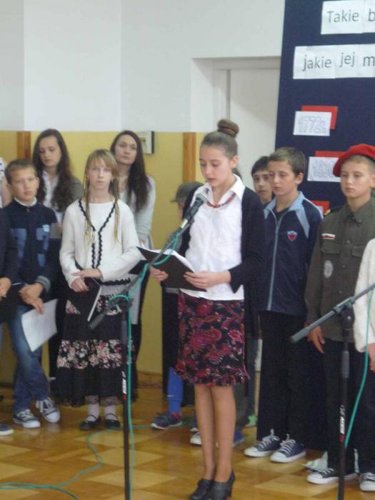 Uczniowie mogli poznać najważniejsze wydarzenia związane z czasem zaborów i dowiedzieć się, jak Polacy dążyli do odzyskania niepodległości utraconej w skutek zaborów. Dzięki pieśniom patriotycznym uczniowie poprowadzili nas przez dzieje od czasów zaborów, przez powstanie listopadowe i styczniowe, aż do okresu I wojny światowej, gdy to Polska 11 listopada 1918 r. pojawiła się na mapach Europy, a tym samym odzyskała utraconą niepodległość. Uroczystość przypomniała nam, że dzisiejsza Polska - wolna i niepodległa wyrosła z krwi naszych praojców.