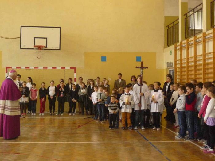 13 marca 2015 r. Zespół Szkół w Rozborzu odwiedził szczególny gość - Jego Ekscelencja Biskup Adam Szal. Wizyta tak szanowanego Gościa była wyjątkowa dla nauczycieli, dyrekcji oraz wszystkich uczniów. Na sali gimnastycznej uczniowie całej szkoły wraz z nauczycielami brali udział w drodze krzyżowej, którą prowadziła młodzież klasy III gimnazjum oraz schola parafialna. Ksiądz biskup skierował do zebranych słowo wsparcia i radosnego przesłania na zbliżające się Święta Wielkiej Nocy.