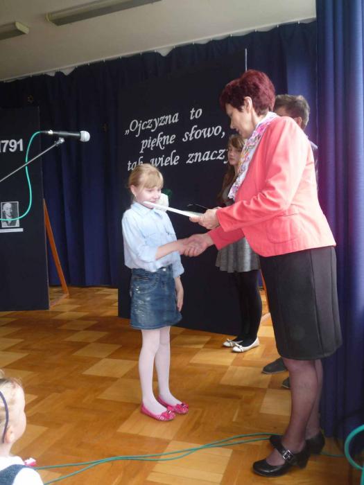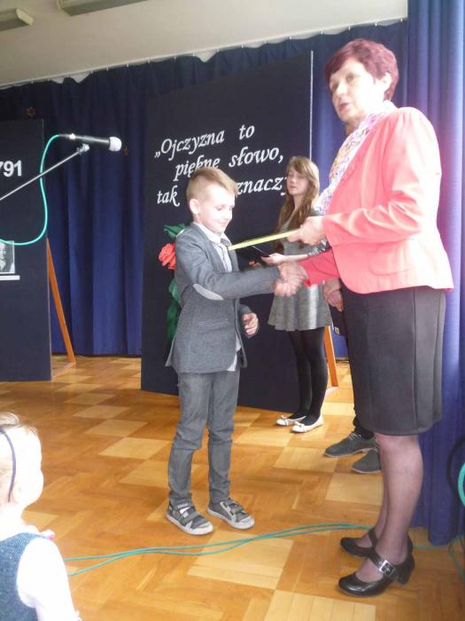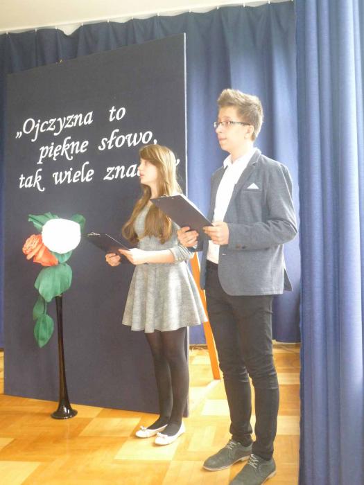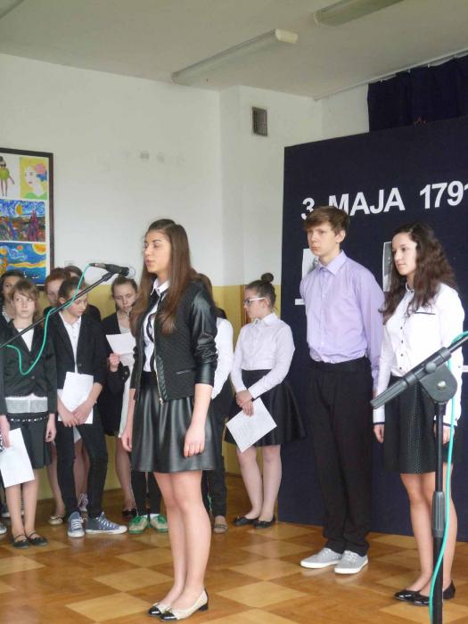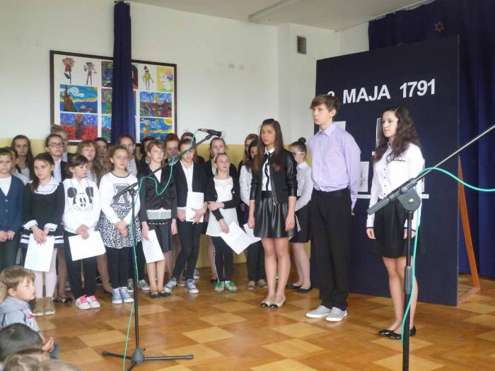 Jak co roku z okazji Narodowego Święta Konstytucji 3 Maja w naszej szkole odbyła się uroczysta akademia. Uczniowie z kółka teatralnego przypomnieli nam o wydarzeniach, które miały miejsce w Rzeczypospolitej w XVIII w. Młodzież recytowała wiersze poetów polskich mówiące o miłości do ojczyzny i narodowych symbolach. Wiersze przeplatano piosenkami o ojczyźnie, które wykonywał chórek szkolny.