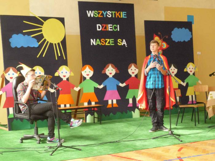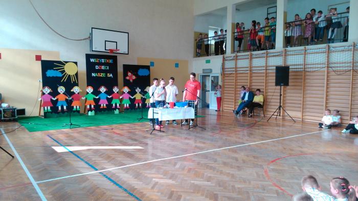Nie zabrakło pięknych tańców w wykonaniu najmłodszych uczniów, wspaniałych piosenek zaśpiewanych przez chórek szkolny i solistów oraz krótkich, kabaretowych przedstawień. Cała społeczność szkolna z ogromnym zaangażowaniem przygotowywała się na to Święto przez kilka tygodni. Owocem tego była wspaniała – rozśpiewana i roztańczona uroczystość. Gimnazjaliści zaprezentowali ponadto ciekawe doświadczenia z chemii, w których mogli wziąć udział chętni uczniowie. Nauka poprzez zabawę i doświadczenie przyniesie zapewne niemałe korzyści. Cieszymy się, że ten wyjątkowy dla wszystkich Dzień obchodzony był w naszej szkole tak uroczyście.