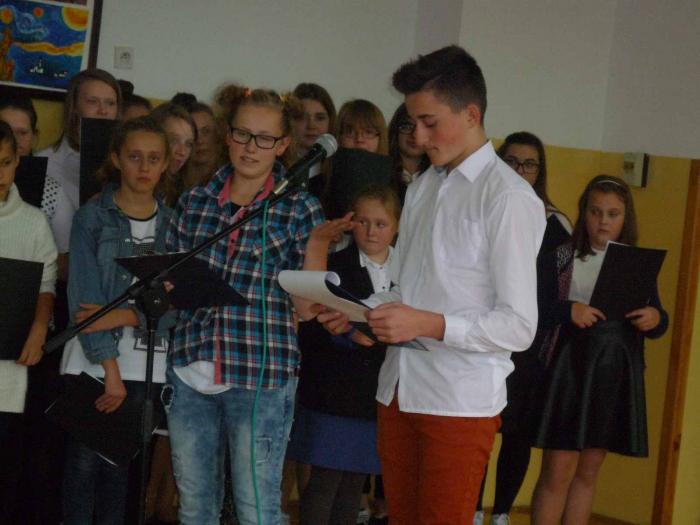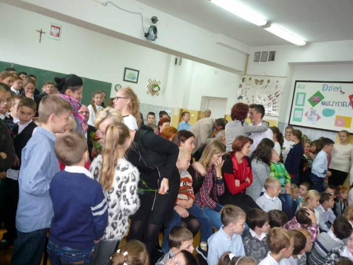 13 października odbyła się akademia z okazji Dnia Edukacji Narodowej. Uczniowie klasy III gimnazjum zaprezentowali, krótkie przedstawienie, które w bardzo humorystyczny sposób przypomniało nam ważną rolę Nauczycieli w naszym życiu. To dzięki Nim młody człowiek uczy się poznawać otaczający świat, rozumieć jego porządek, dostrzegać wartości, kochać drugiego człowieka. Klasa IV zaprezentowała krótkie rymowanki związane także z pracą nauczycieli. Po zakończonym przedstawieniu złożyliśmy wszystkim pracownikom szkoły życzenia i wręczyliśmy kwiaty.