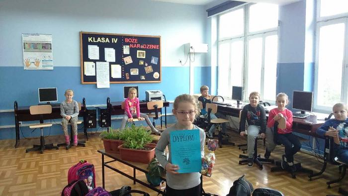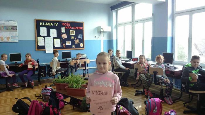 Od początku grudnia trwał szkolny konkurs informatyczny na wykonanie kartki świątecznej techniką komputerową. Konkurs był adresowany do uczniów klas I - III szkoły podstawowej. Organizatorem konkursu była pani Edyta Krukowska. Uczniowie mieli do wykonania kartkę świąteczną w programie Paint, oprócz grafiki przedstawiającej symbole Świąt Bożego Narodzenia, pisali samodzielnie ułożone życzenia.