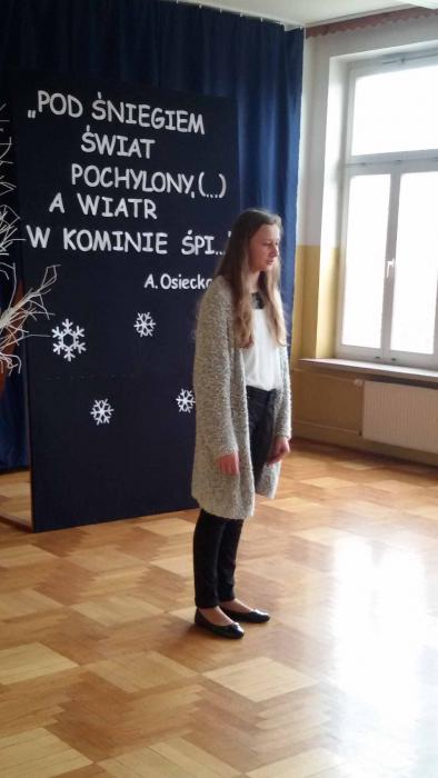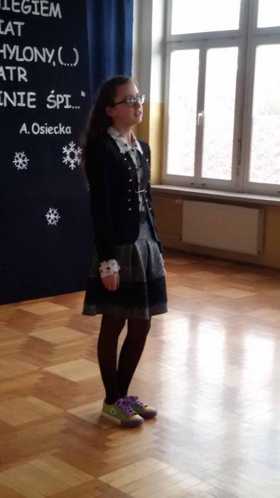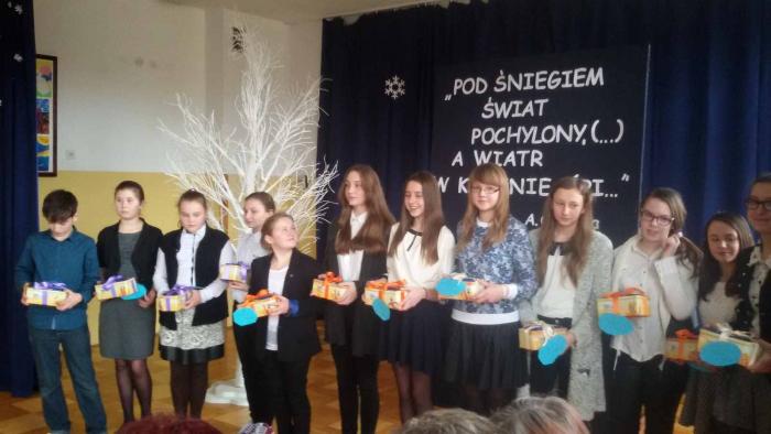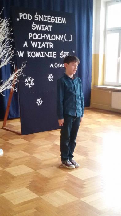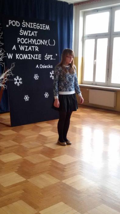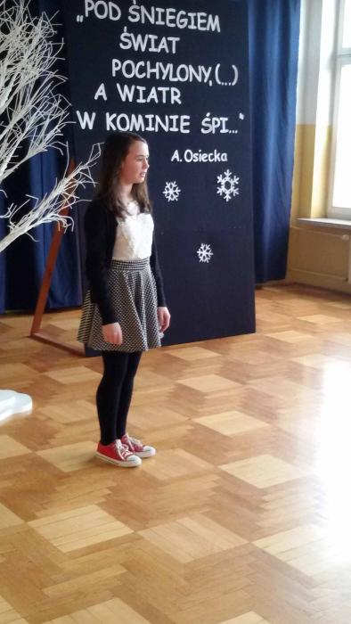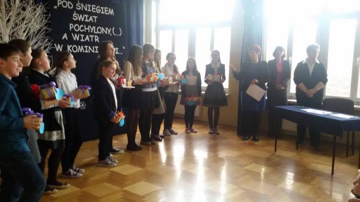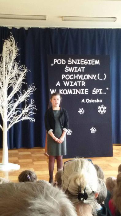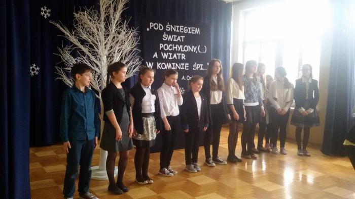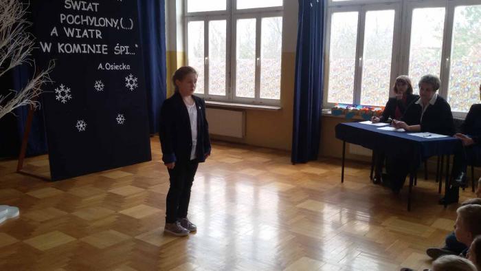 10 lutego 2016 r. w naszej szkole odbył się kolejny Konkurs Recytatorski "Strofy mi bliskie", zorganizowany przez p. Martę Całkę i p. Edytę Krukowską. Był on poświęcony tematyce zimowej. Uczniowie recytowali piękne wiersze różnych autorów. Konkurs zgromadził wielu uczestników. W skład jury oceniającego prezentacje wchodziły panie: Dyrektor – Zofia Zawadzka, p. Marta Stącel oraz p. Maria Sławińska. Po pięknych występach wszyscy uczestnicy konkursu otrzymali słodkie upominki, a zwycięzcy nagrody książkowe. Mamy nadzieję, że za rok będziemy mogli uczestniczyć w podobnym wydarzeniu.
