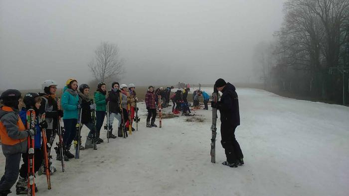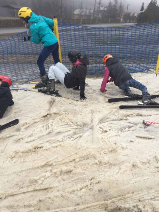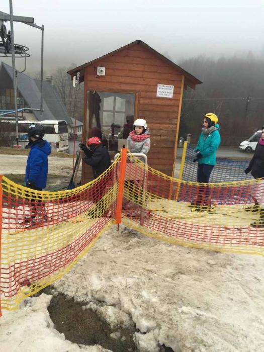 Będąc na miejscu wypożyczyliśmy sprzęt narciarski a następnie z instruktorami weszliśmy na niewielką górkę tzw. "Oślą łączkę''. Podzieliliśmy się na grupy, zrobiliśmy rozgrzewkę i rozpoczęliśmy naukę jazdy na nartach od podstaw. Już wtedy niektórzy zaliczyli wiele upadków, lecz nie zrazili się do nart. Po pierwszych zjazdach siatka hamująca miała kilka dziur. W południe udaliśmy się na ciepły posiłek. Po przerwie niektórzy wrócili na "Oślą łączkę", a jedna z grup zdecydowała się wjechać na wyższy stok. Bawiliśmy się świetnie do godziny 16:00, chodź mokrzy i zmęczeni to jednak z uśmiechem wróciliśmy do domu.