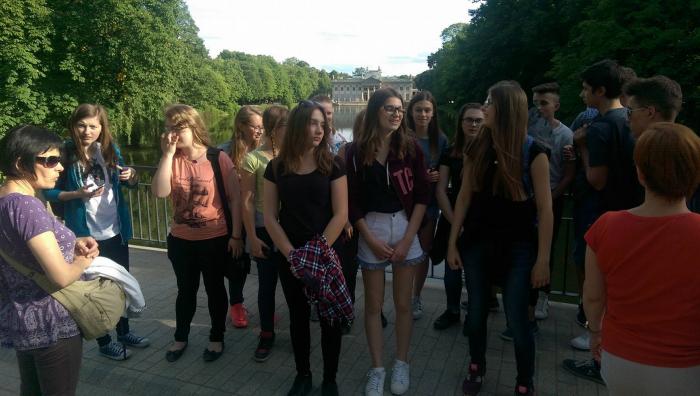 Chwilą wytchnienia okazał się Park Łazienkowski, w którym mogli nacieszyć się pięknym widokiem, a organizmowi dać wytchnienie od wysokiej temperatury. Wybawieniem dla zmęczonych już nóg gimnazjalistów, stała się przeprawa gondolą przez jezioro "pełne rekinów i piranii", jak to żarcie stwierdził przewodnik.