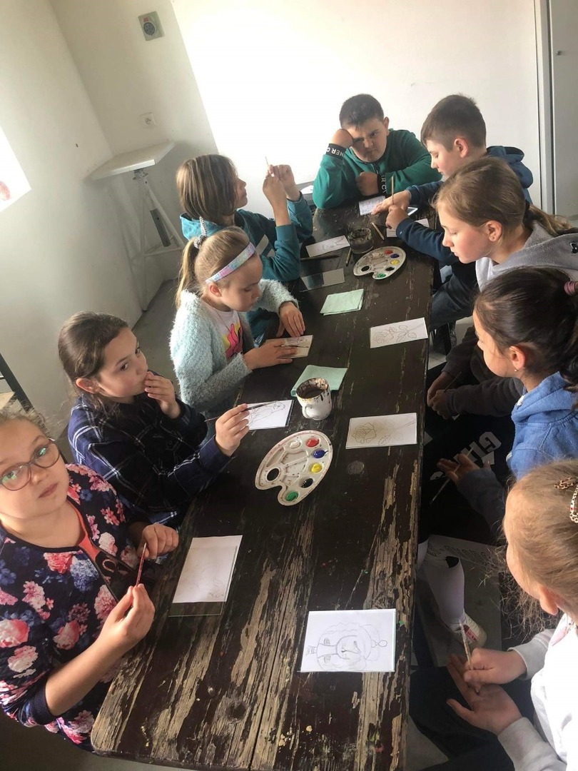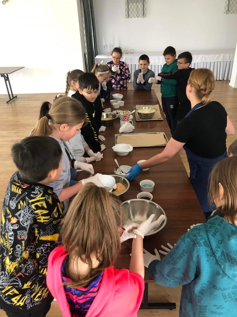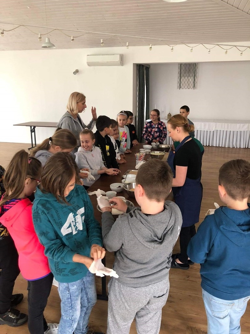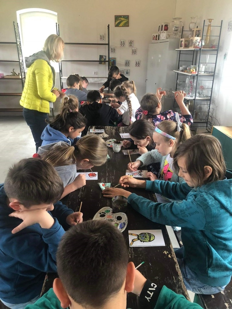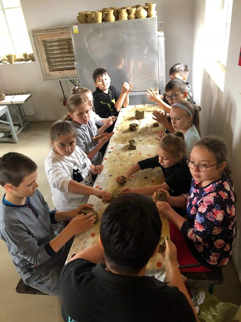 Uczniowie poznali sekrety pracy garncarza, cukiernika oraz ręczne zdobienie szkła przez grawer i malowanie. Pobyt w Baszni zakończyła zabawa na dmuchańcach. Zwieńczeniem wycieczki była pyszna pizza.