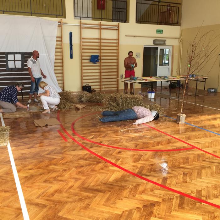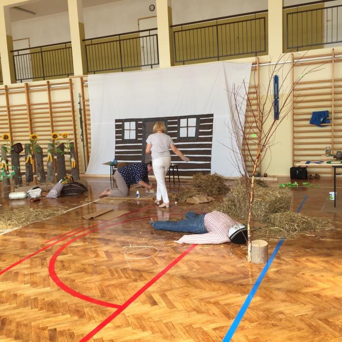 Grupę kabaretową, która przedstawiła scenkę z życia wsi przygotowała pani Marta Całka. Należy w tym miejscu podziękować absolwentom naszej szkoły, którzy poświęcili swój wakacyjny czas, by wziąć udział w przedstawieniu.