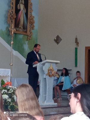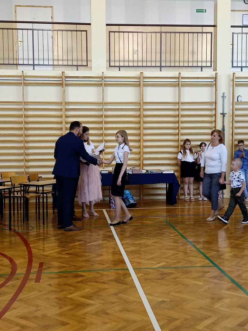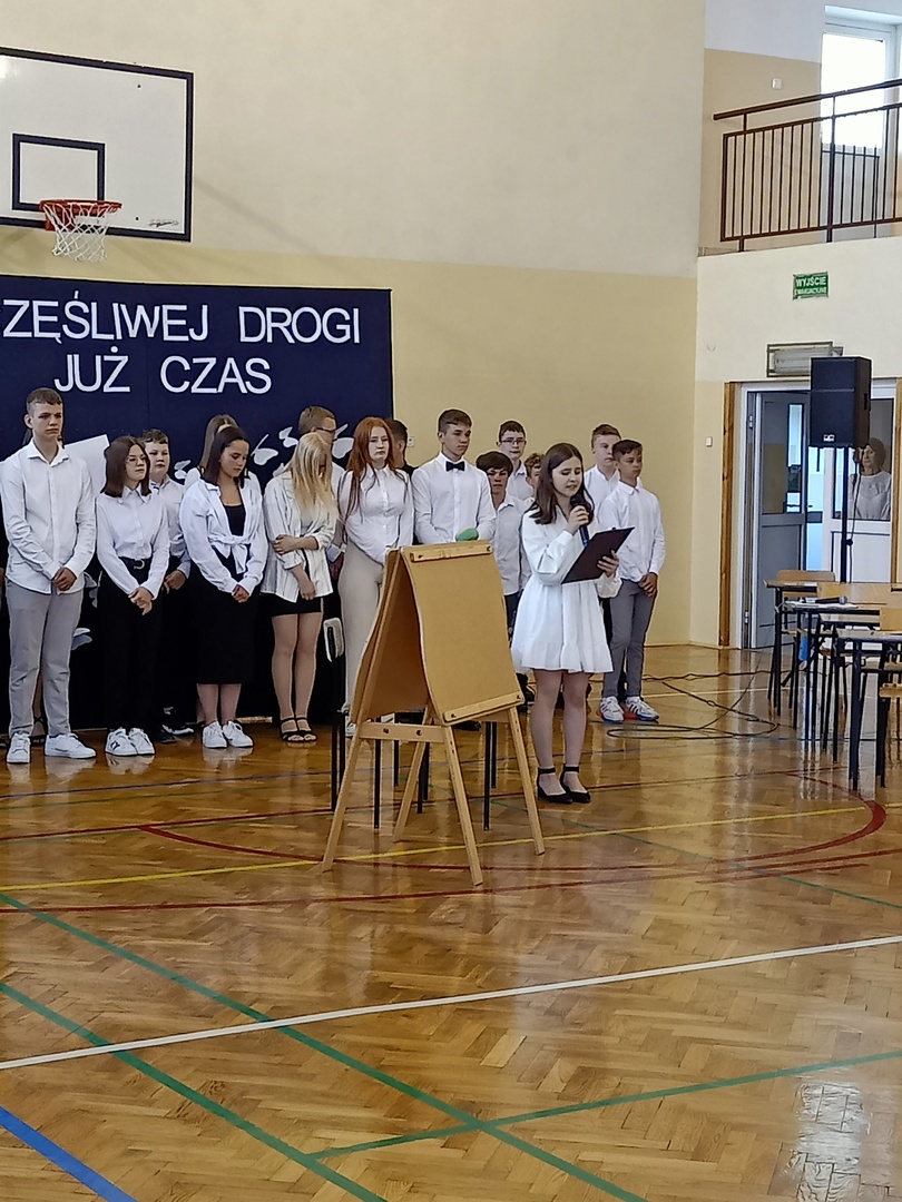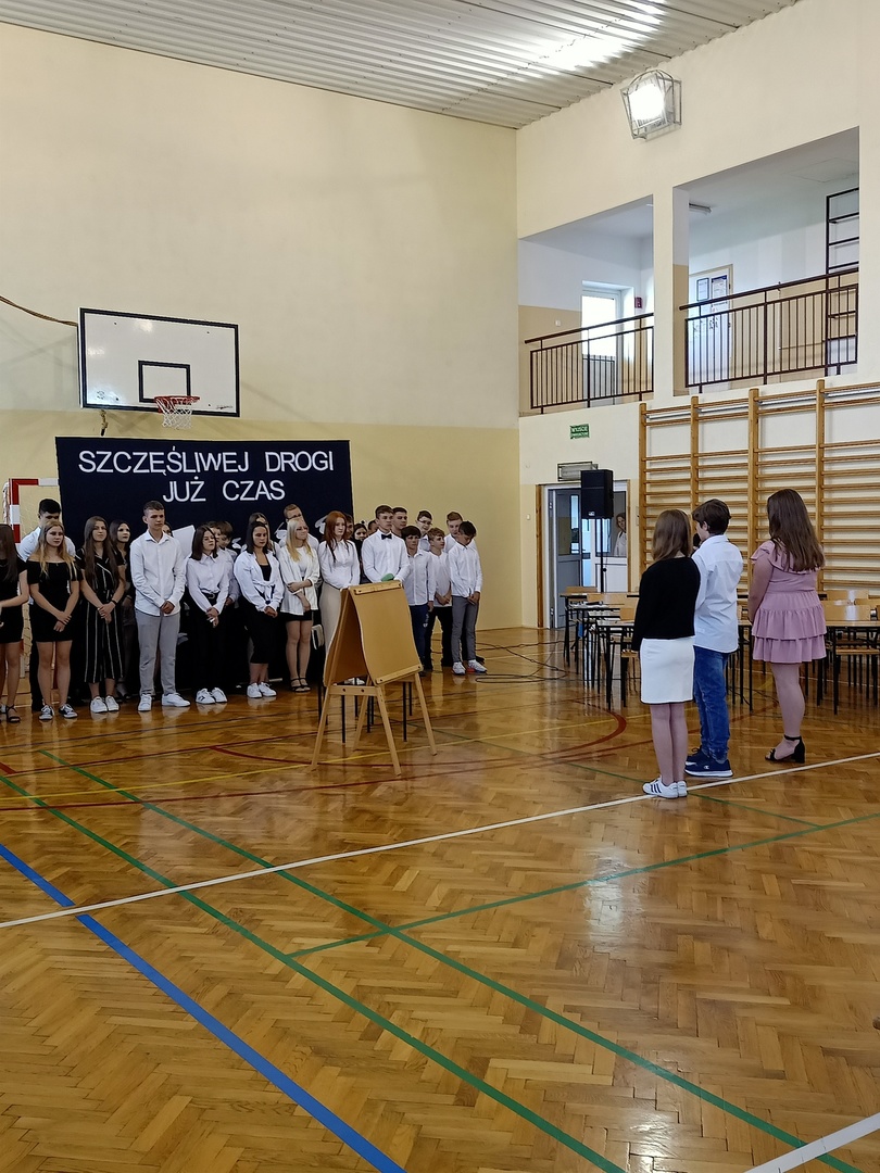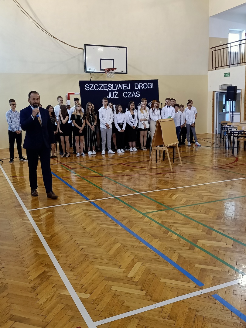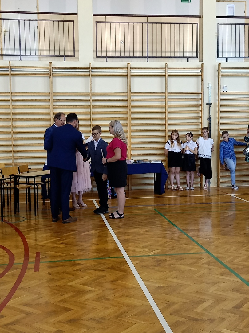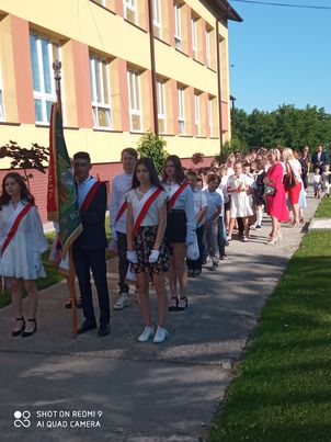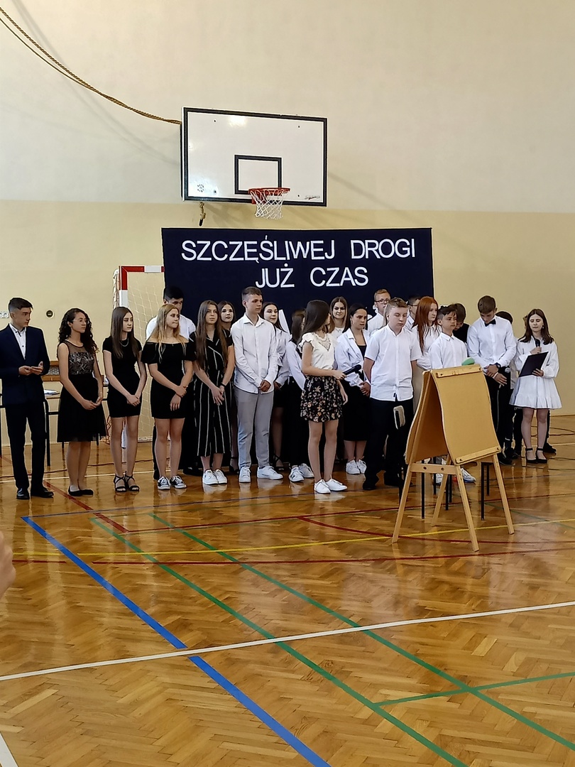 24 czerwca zakończyliśmy rok szkolny 2021/2022. Cała społeczność szkolna uroczyście, wraz ze sztandarem wyruszyła na mszę świętą do Kościoła Parafialnego. Następnie w sali gimnastycznej odbyła się akademia, podczas której pożegnaliśmy absolwentów klas ósmych. W czasie uroczystości Pan Dyrektor wręczył nagrody