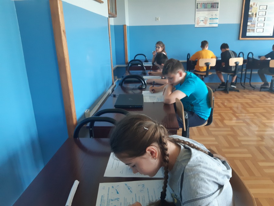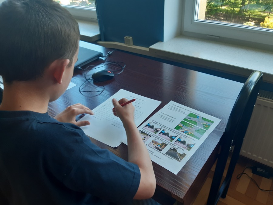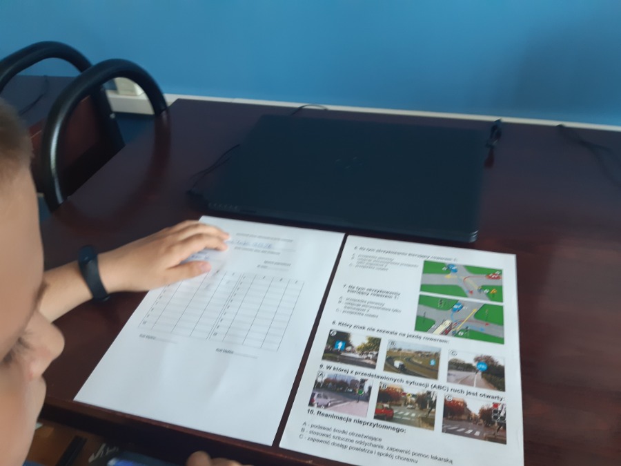 Uczniowie klas IV, V i III Szkoły Podstawowej przystąpili najpierw do części teoretycznej, w której musieli wykazać się znajomością przepisów ruchu drogowego.