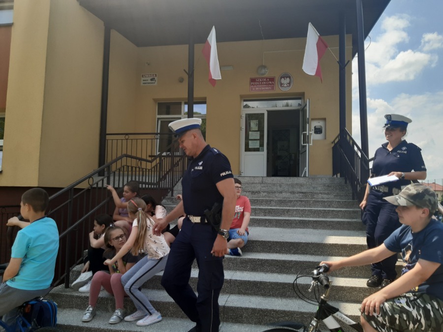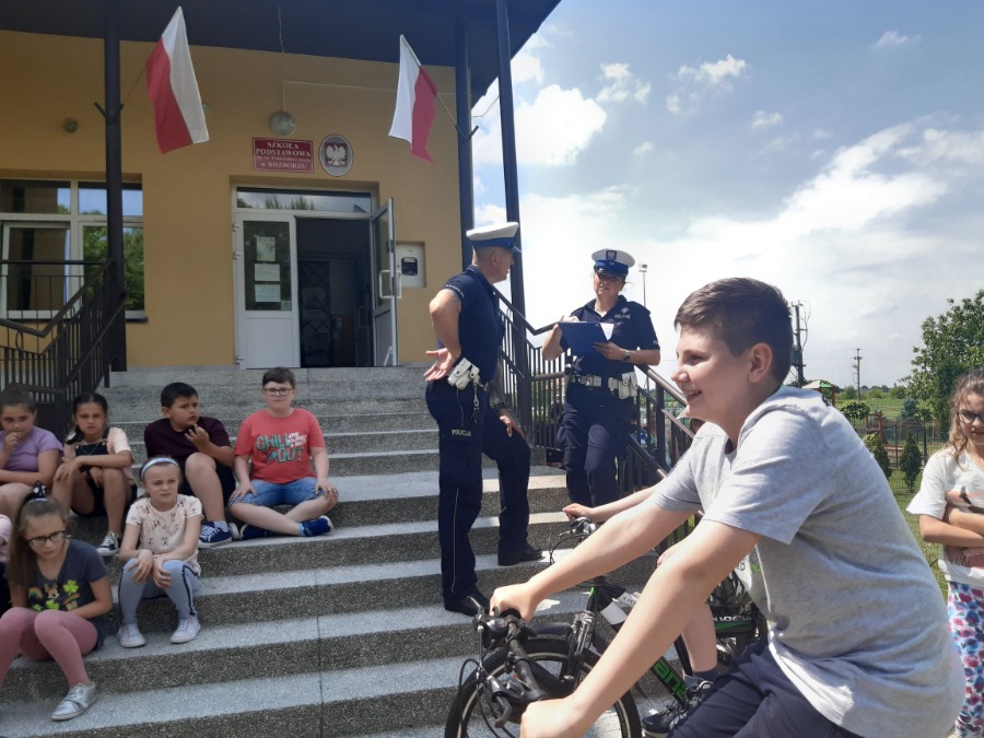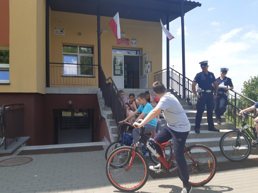 7 czerwca odbyła się część praktyczna, czyli jazda na rowerze. Tu z kolei uczniowie musieli poznane przepisy wykorzystać w praktyce. Egzamin odbył się pod okiem przedstawicieli Policji z Wydziału Ruchu Drogowego. Pan i Pani Policjant przypomnieli uczniom zasady prawidłowego i bezpiecznego poruszania się rowerzysty po drodze. Poinformowali również o konsekwencjach niewłaściwego i lekkomyślnego zachowania się uczestników drogi, a także poruszania się bez uprawnień.