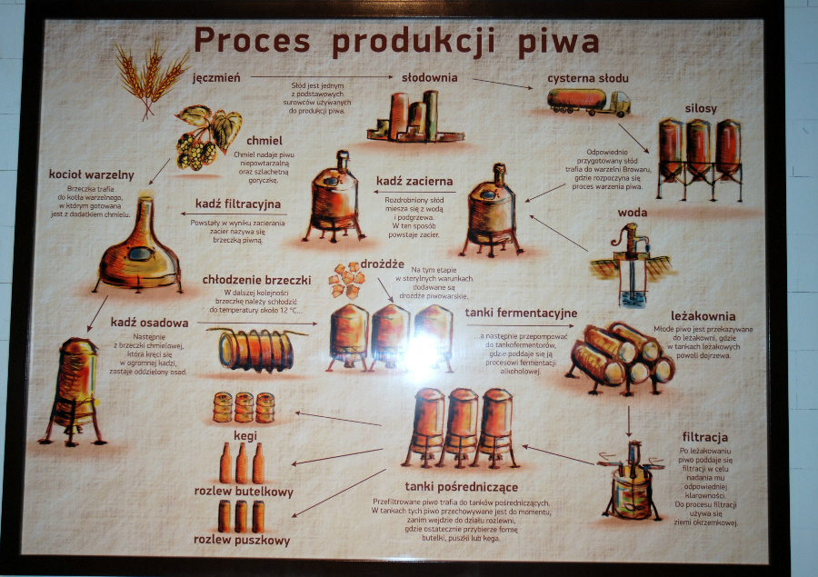 Już o godzinie 730 zebraliśmy się przed autokarem, by po ponad 2 godzinach dotrzeć na miejsce. Na dziedzińcu Browarów Zwierzynieckich czekała już na nas Pani przewodnik, która oprowadziła nas po muzealnej części zakładów piwowarskich.