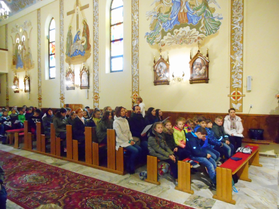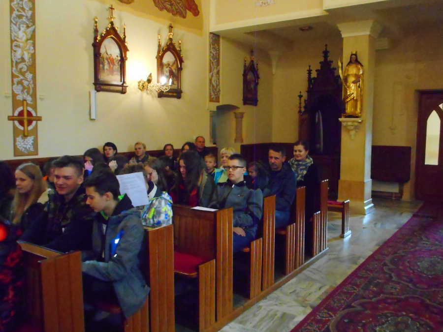 Gdy dotarliśmy na miejsce byliśmy świadkami piętnastominutowej prezentacji, która przybliżyła nam historię powstania Sanktuarium Matki Bożej Pocieszenia w Jodłówce. Po prezentacji odbyła się Msza Święta, w trakcie której odśpiewaliśmy hymn szkoły oraz wysłuchaliśmy bardzo cennego kazania od księdza proboszcza Jerzego Jakubca. Gdy nabożeństwo dobiegło końca, niektórzy uczniowie udali się do źródełka, które znajdowało się obok sanktuarium, a pozostali powrócili do autokaru. Uczniów klasy VII i VIII czekała niespodzianka, otóż wzięli oni udział w wycieczce do kopalni gazu. Mimo niesprzyjającej, wietrznej pogody wszyscy z uwagą słuchali opowieści kierownika kopalni, który opowiadał między innymi o pracy w jego zawodzie i niebezpiecznych wypadkach, które tam miały miejsce. Bardzo chętnie odpowiadał też na zadawane przez nas pytania. Po skończonej lekcji wszyscy wrócili autokarem do Rozborza. Mamy nadzieję, że co roku będziemy w ten sposób spędzać święto naszej szkoły, ponieważ każdy był zadowolony z wyjazdu, idee naszego patrona stały się nam bliższe. Najważniejsze, abyśmy umieli dostrzegać dobro w drugim człowieku i cieszyć się otaczającym nas światem.