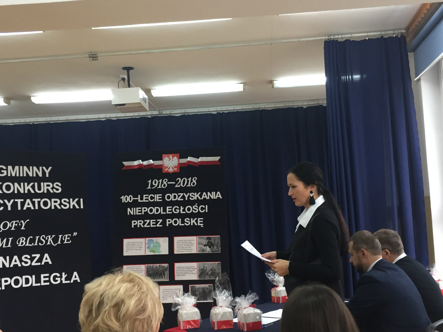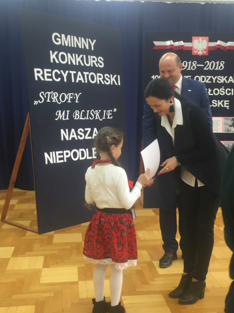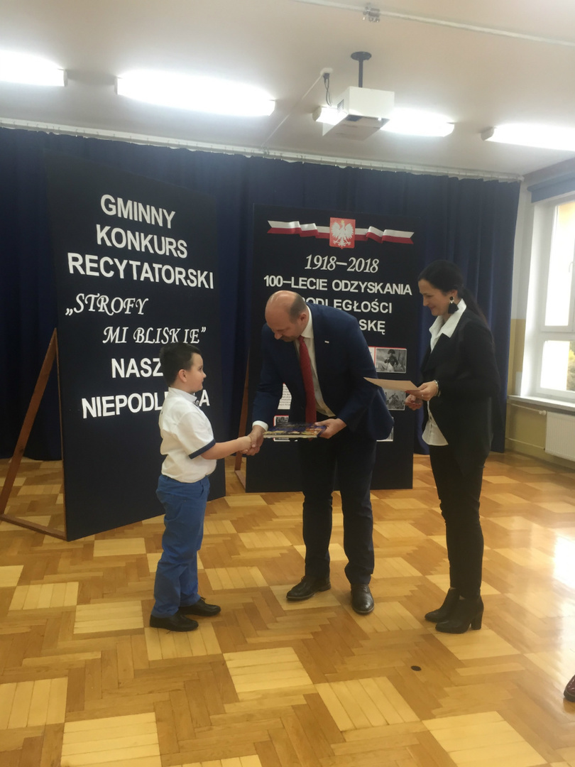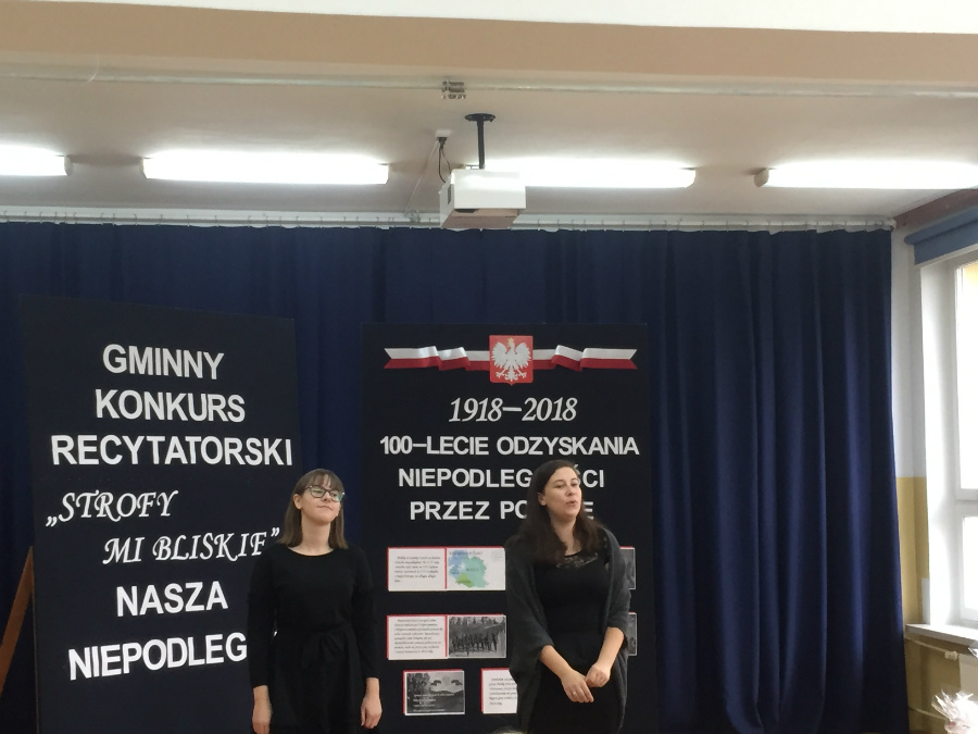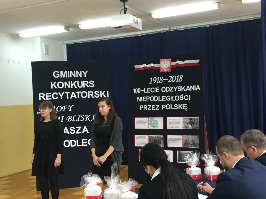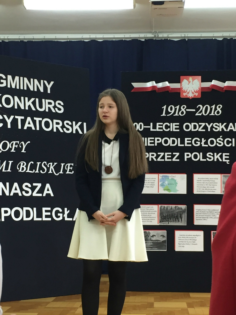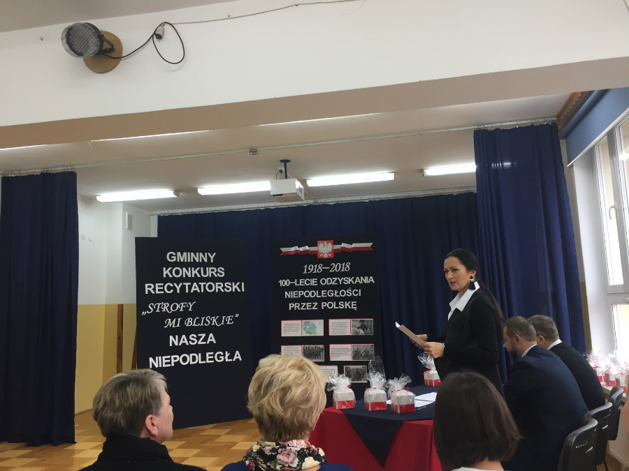 Od wielu lat w naszej szkole odbywa się konkurs recytatorski pt: „Strofy mi bliskie”. W tym roku konkurs miał rangę gminną pod hasłem ,,Nasza Niepodległa”.