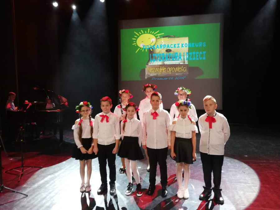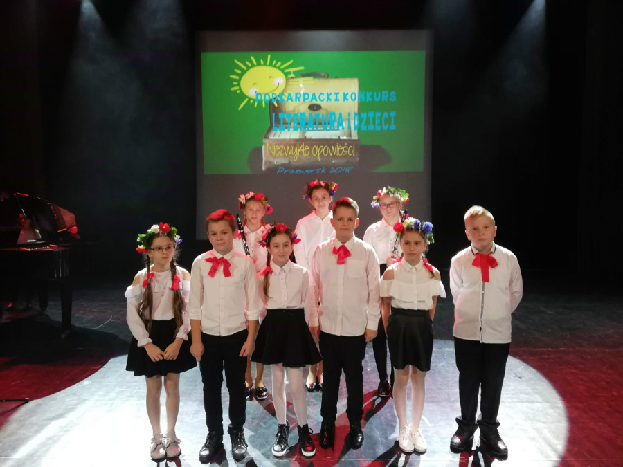 Celem konkursu jest upowszechnianie i zachęcanie do czytania książek, popularyzacja literatury dziecięcej, inspirowanie do poszukiwań nowych form pracy artystycznej oraz promocja dokonań artystycznych dzieci. Źródłem pomysłów tegorocznych prezentacji są opowieści o miejscach, wydarzeniach i ludziach, związane z faktami historycznymi. W kategorii piosenka, naszą szkołę reprezentował zespół wokalno-instrumentalny ANIMATO, który za wykonanie piosenki 'Mariackie hejnały" otrzymał NOMINACJĘ do eliminacji rejonowych w Przemyślu. Serdecznie gratulujemy.