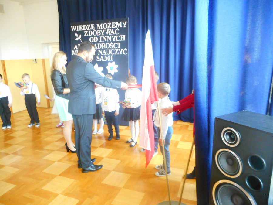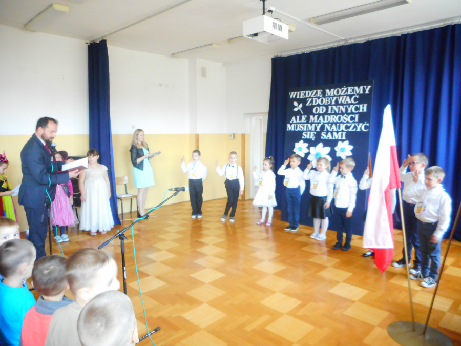 Uczniowie kl. I ślubowali być dobrymi Polakami, godnie reprezentować swoją szkołę, nauką i swoim zachowaniem sprawiać radość rodzicom i nauczycielom.