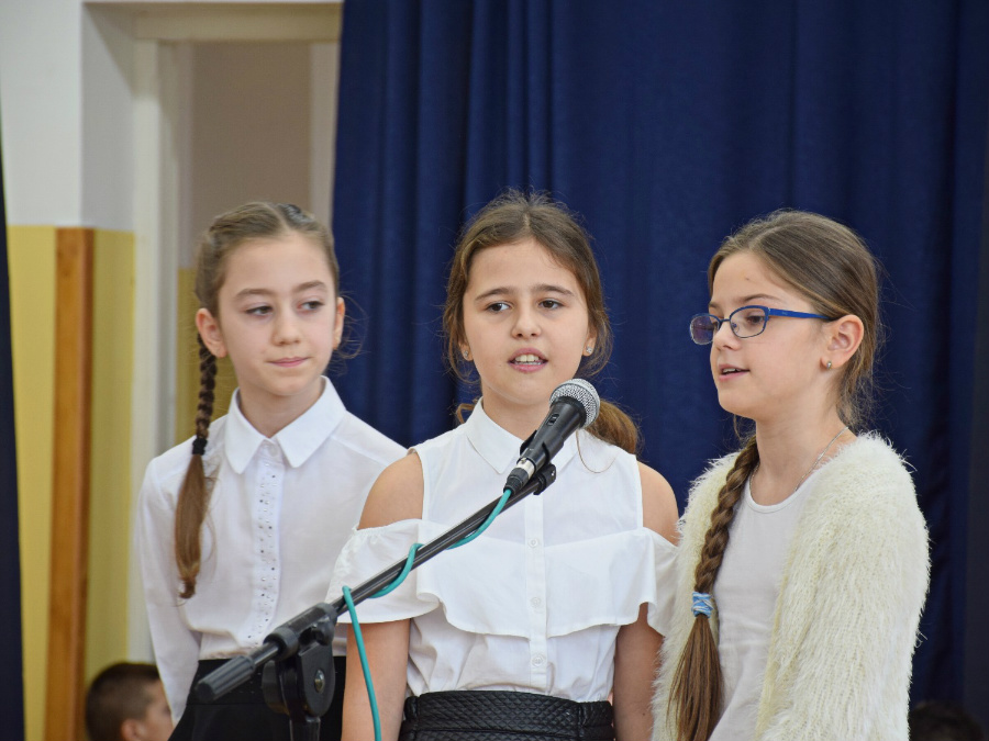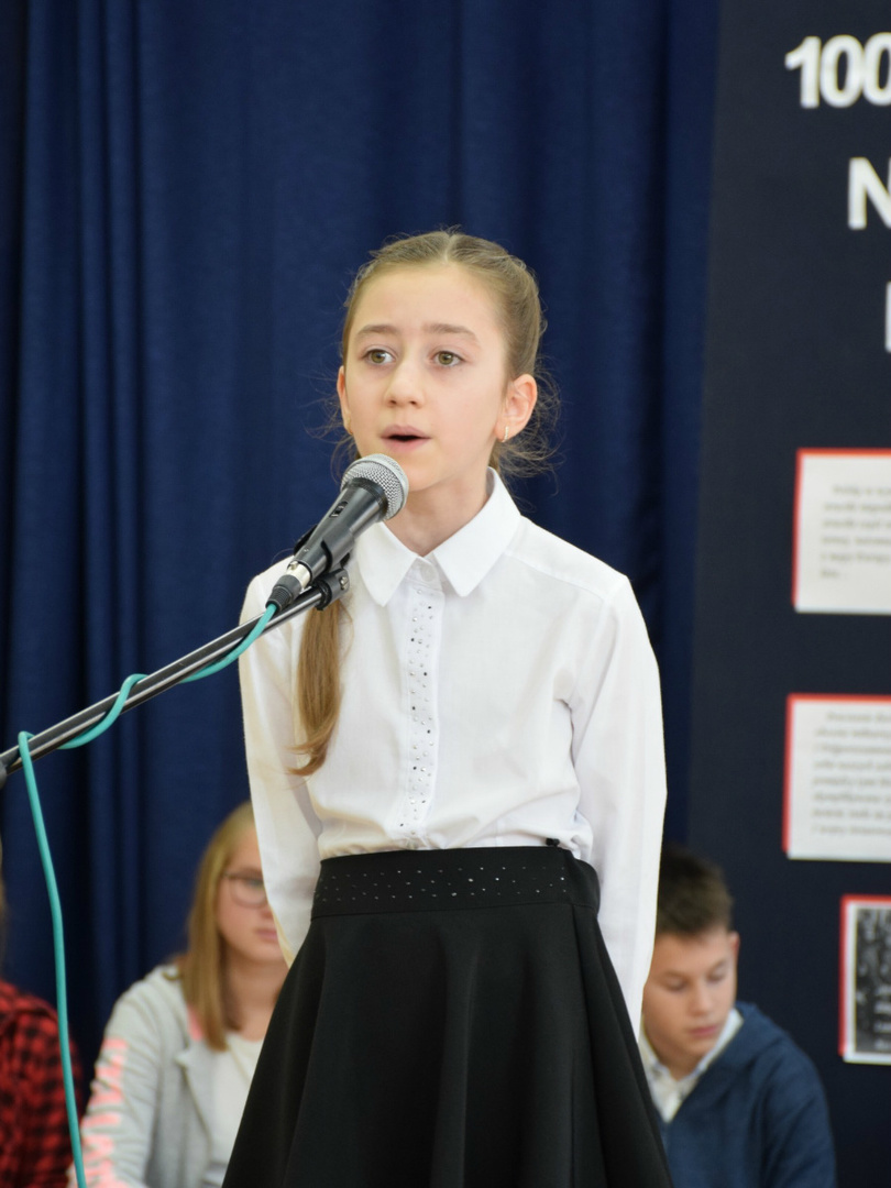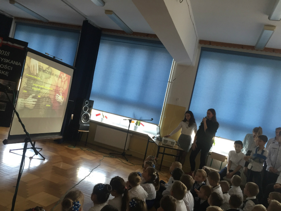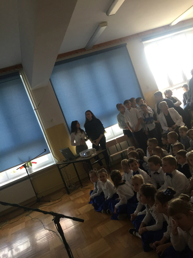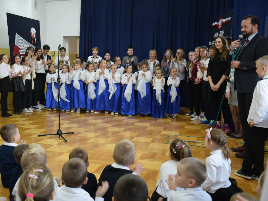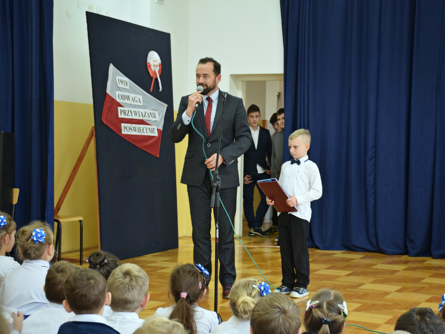 Dnia 9 listopada 2018r. w naszej szkole odbyła się akademia z okazji ,,100 Rocznicy Odzyskania Niepodległości" przez nasz ojczysty kraj. Uroczystość rozpoczęła się pokazem multimedialnym przygotowanym przez uczennice klasy III gimnazjalnej, które wygrały Szkolny Konkurs Informatyczno-historyczny zorganizowany przez p. Edytę Krukowską i p. Renatę Brud z okazji 100 -lecia odzyskania niepodległości. Prezentacja pt. "Drogi ku wolności" przybliżyła nam trudną i długą drogę Polski do odzyskania niepodległości. Część artystyczną przygotowali uczniowie klasy VI pod czujnym okiem pani Doroty Jędruszczak. Mogliśmy obejrzeć również znakomity występ przedszkolaków w którym zatańczyli dla nas i dla ojczyzny poloneza. W trakcie akademii można było usłyszeć piękne teksty o ojczyźnie oraz zaśpiewać liczne pieśni patriotyczne. Gdy przedstawienie dobiegło końca, rozeszliśmy się do klas, ale nie na długo, ponieważ o godzinie 11:11 spotkaliśmy się wszyscy ponownie, aby odśpiewać hymn państwowy.