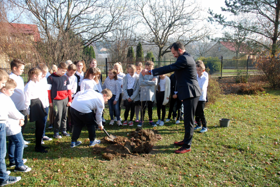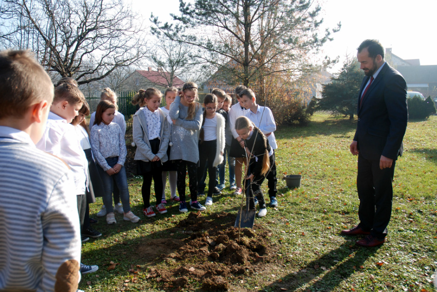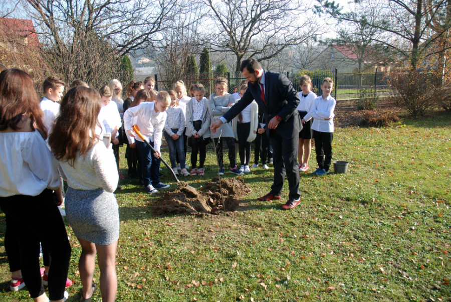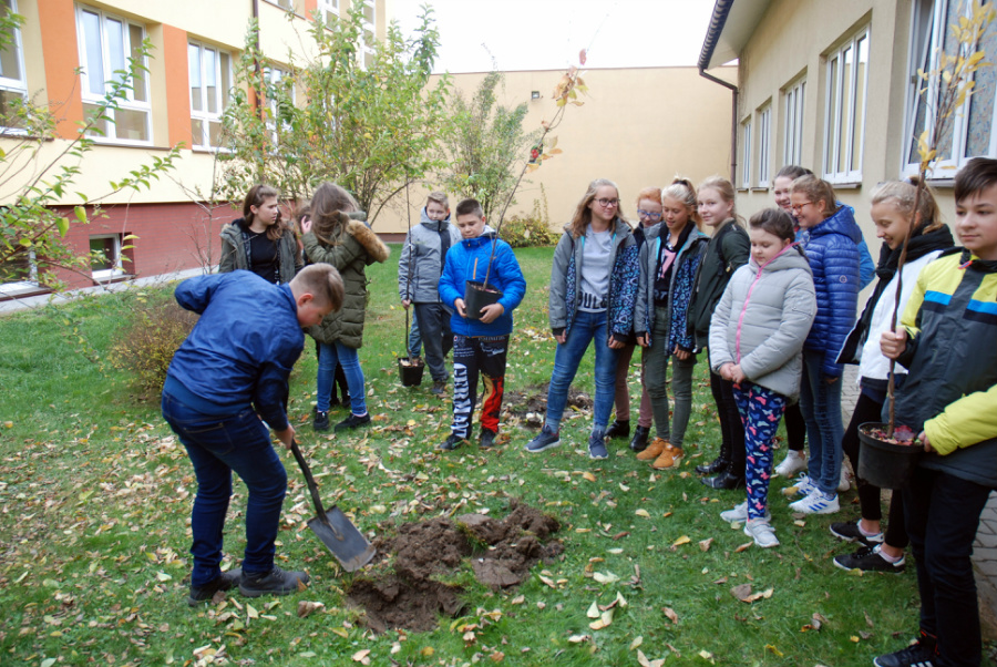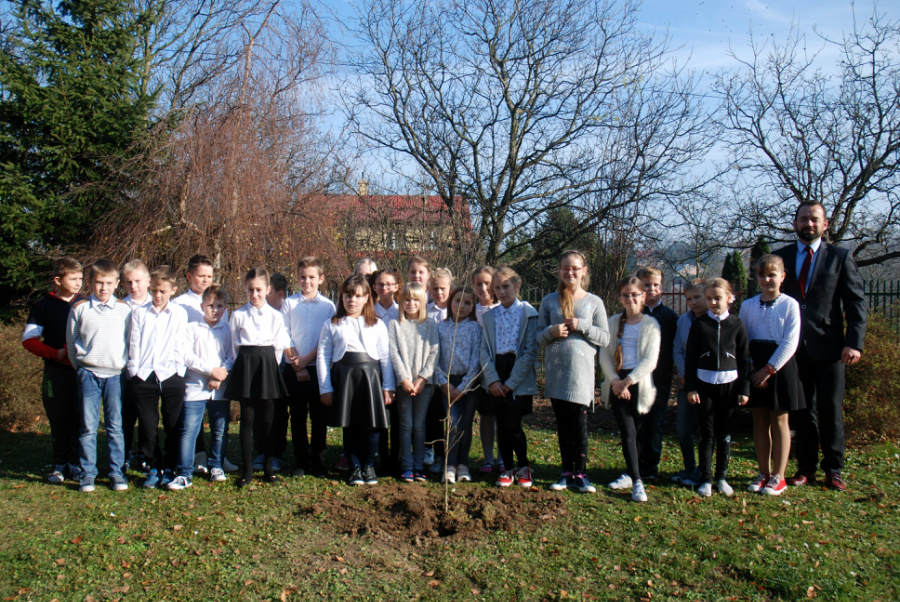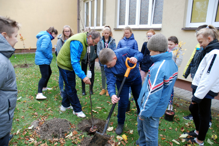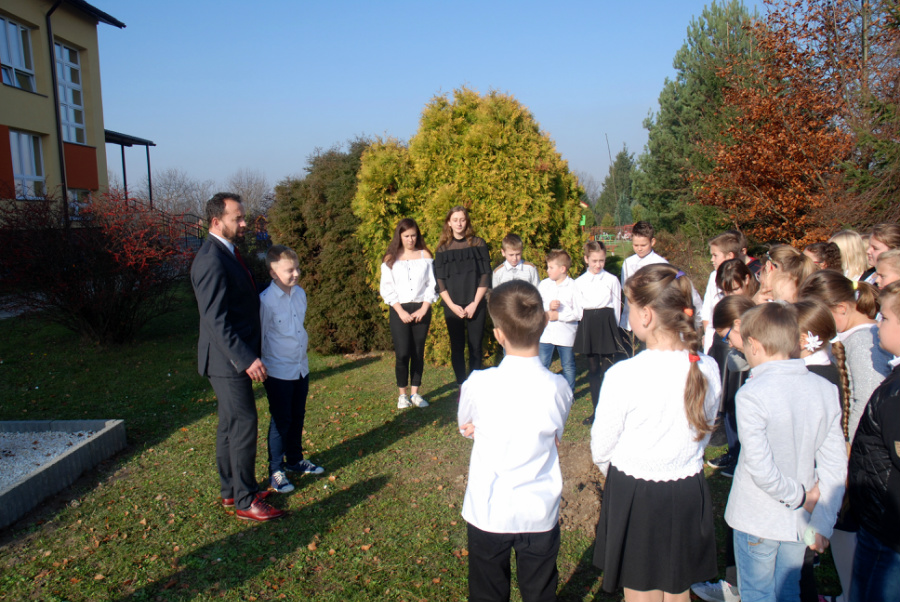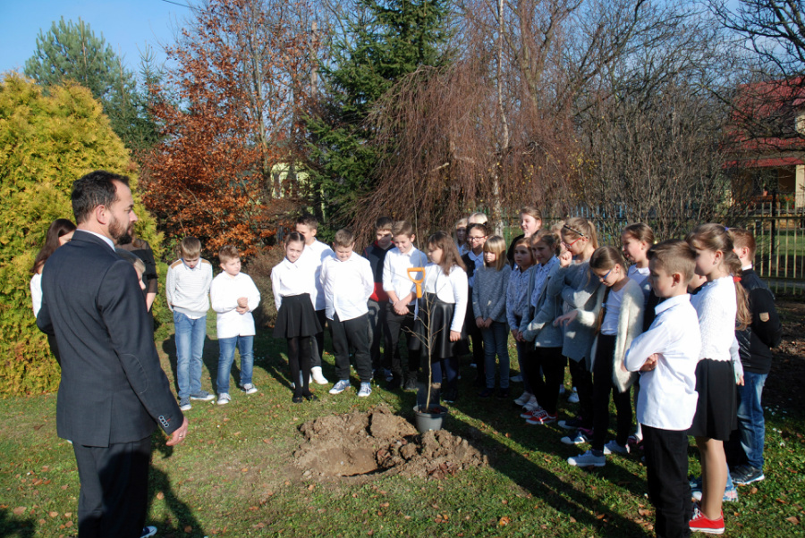 Jedną z wielu inicjatyw podjętych przez naszą placówkę z okazji 100-lecia odzyskania przez Polskę Niepodległości było posadzenie wokół szkoły 10 różnych rodzajów drzew. W dniu 09.11.2018 po uroczystym apelu i odśpiewaniu hymnu państwowego Pan dyr. Paweł Krzyżanowski w obecności uczniów posadził Dąb „Niepodległości”, który ma symbolizować wolność i potęgę Narodu Polskiego.