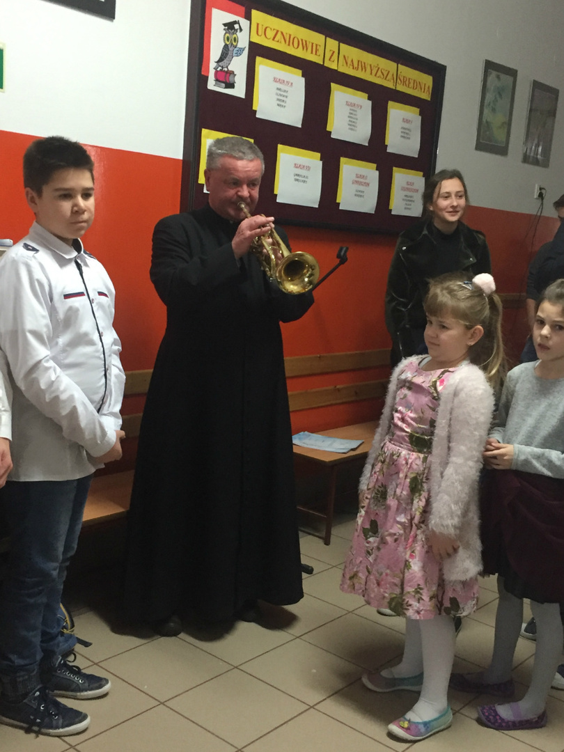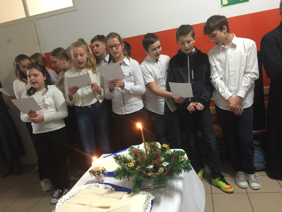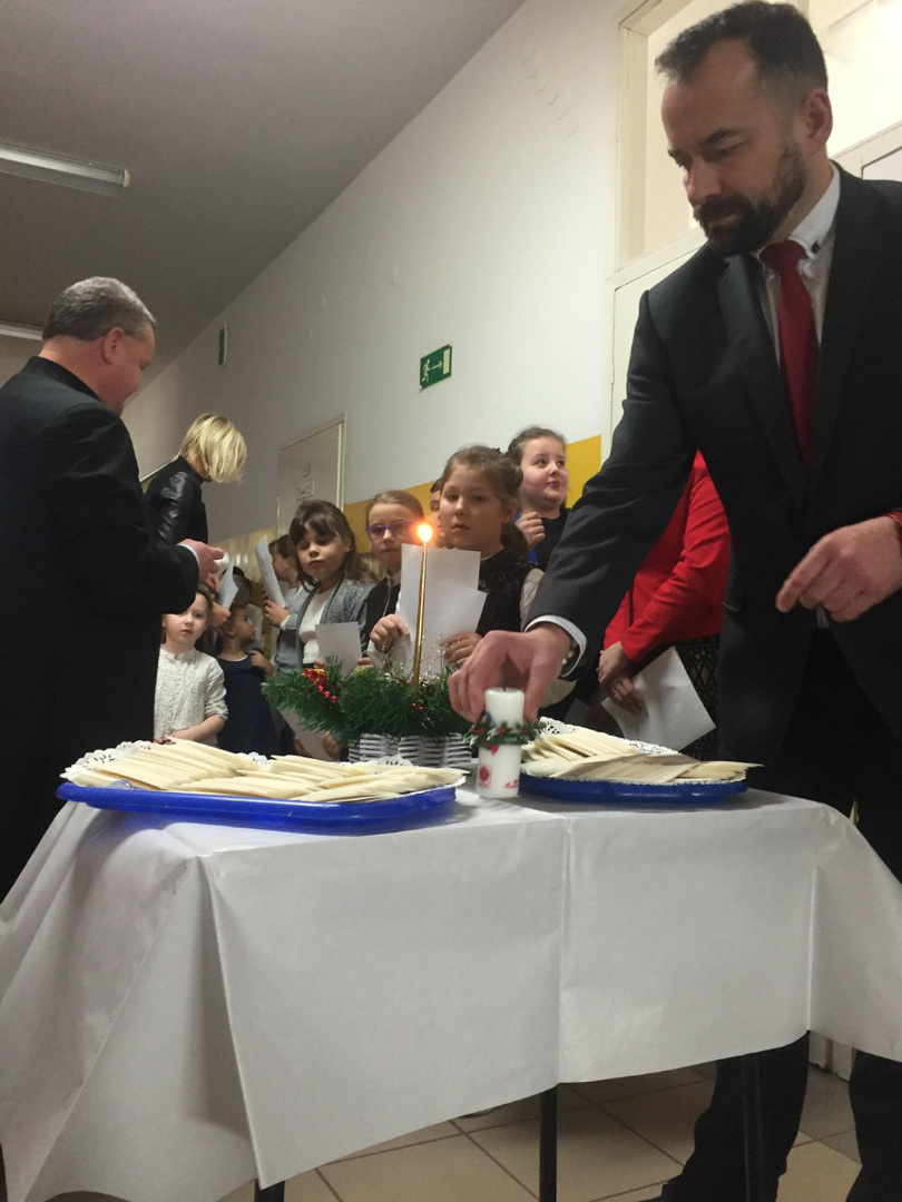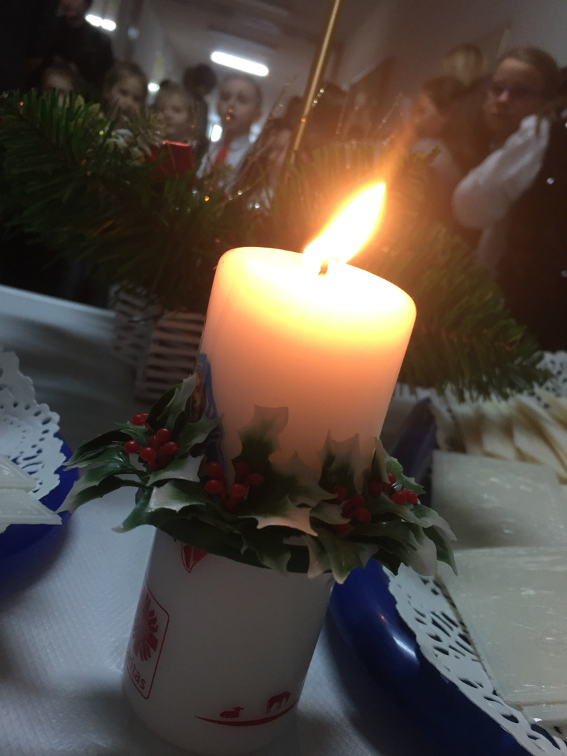 Jak co roku w szkole, także i w tym z okazji zbliżających się Świąt Bożego Narodzenia odbył się apel. Rozpoczęliśmy go od przeczytania fragmentu Ewangelii. Ksiądz proboszcz pobłogosławił nas, poprowadził modlitwę. Następnie za dzieliliśmy się opłatkiem i złożyliśmy sobie nawzajem życzenia. Potem głos zabrał Pan Dyrektor, który podkreślił piękno świąt i zwrócił uwagę jak ważną rolę w naszym życiu odgrywają nasi bliscy i rodzina. Skierował do wszystkich wiele ciepłych słów. Aby poczuć świąteczną atmosferę wspólnie śpiewaliśmy kolędy i pastorałki.