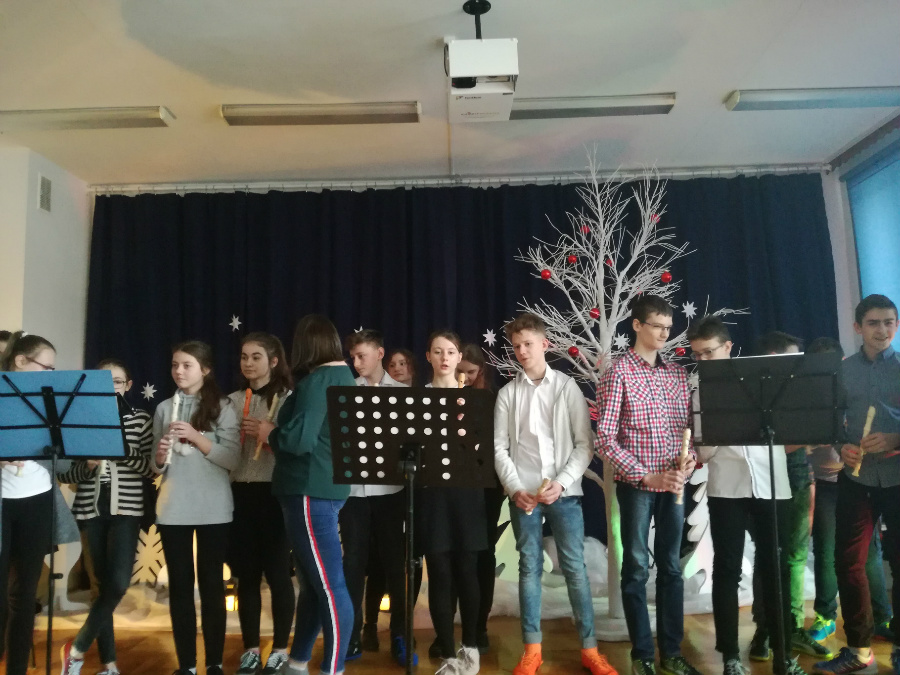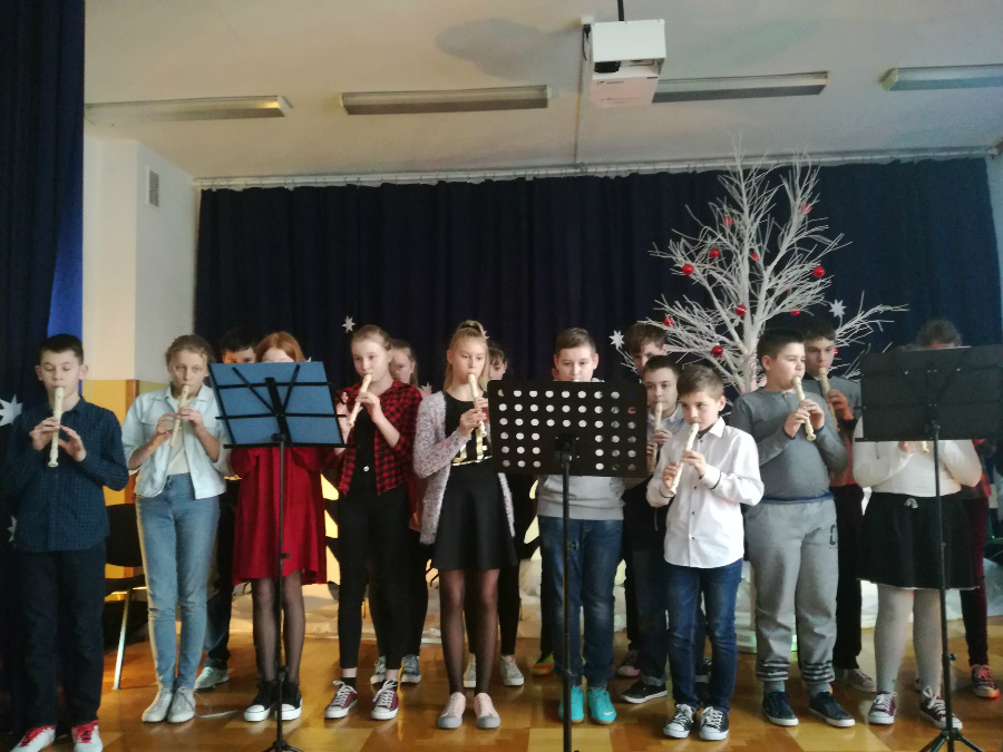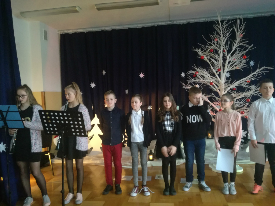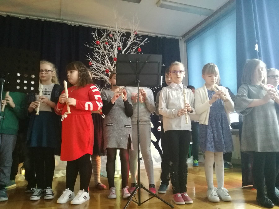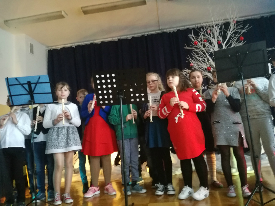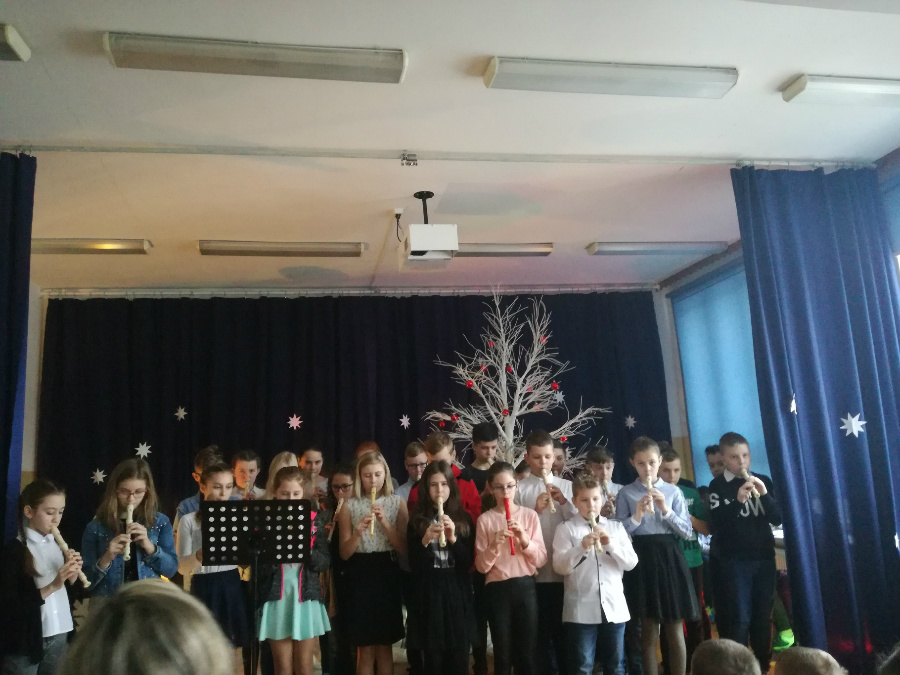 Byliśmy świadkami pięknie recytowanych wierszy, oraz śpiewu tradycyjnych polskich kolęd i pastorałek. Ponadto uczniowie klas starszych zaprezentowali swoje umiejętności gry na flecie, przypominając znane i nieznane melodie kolęd.