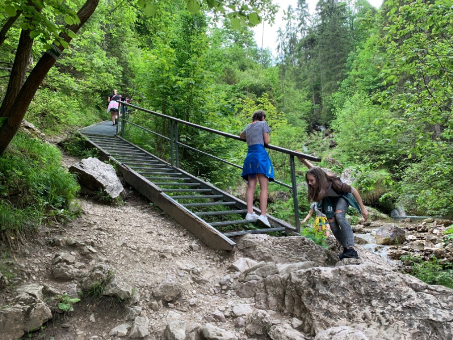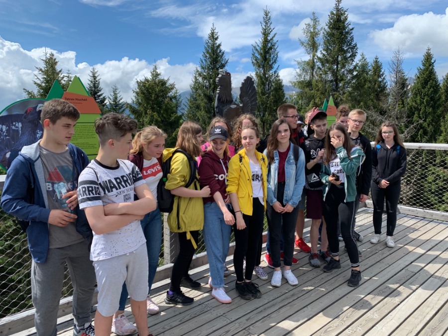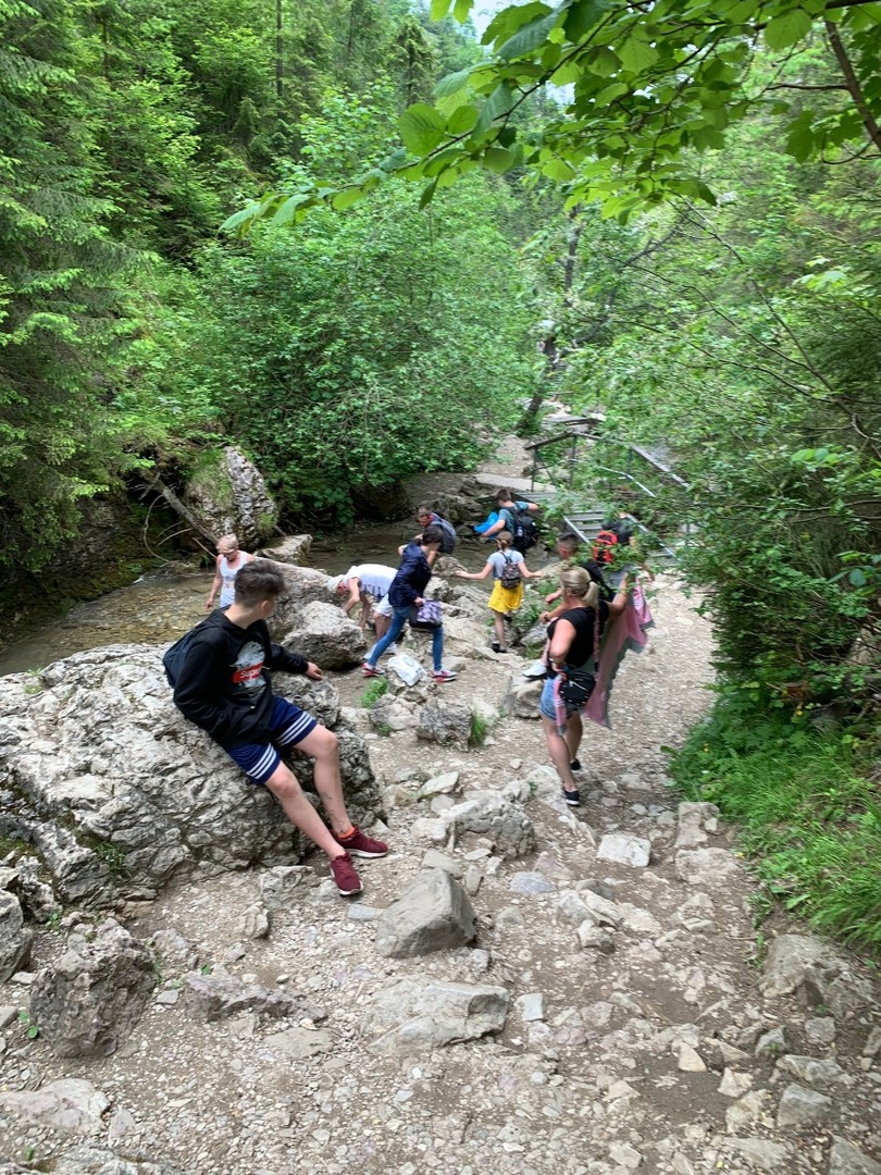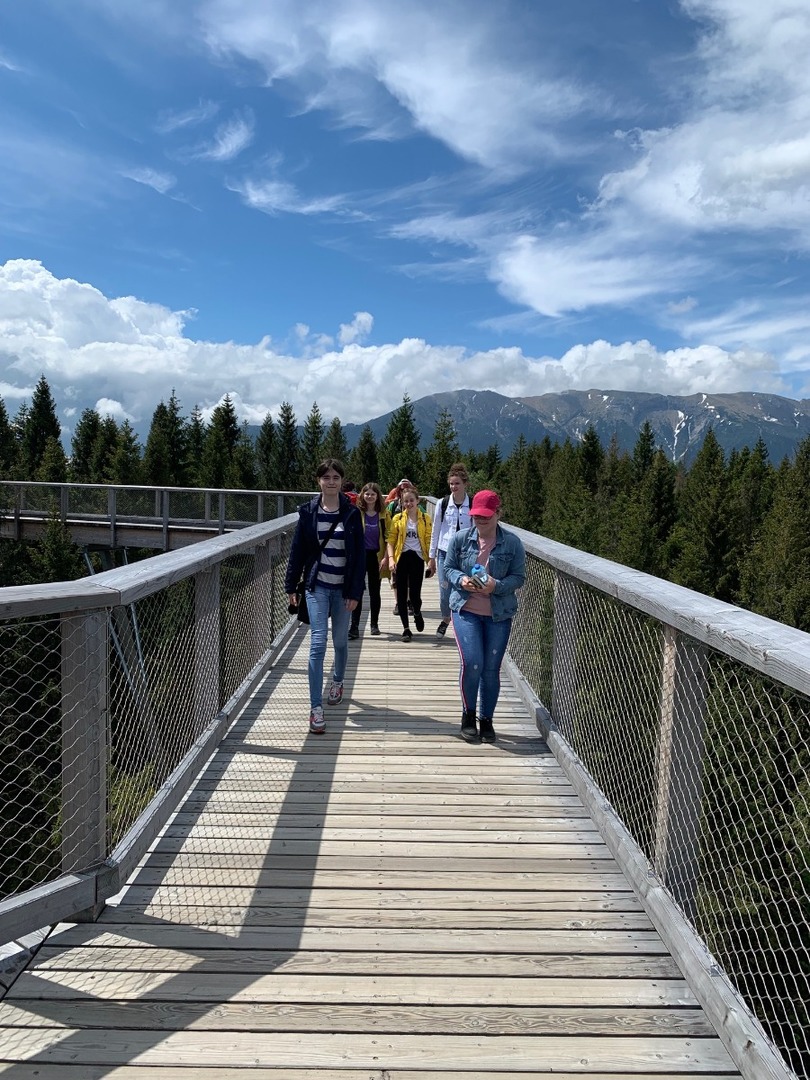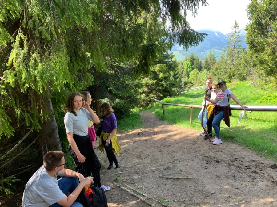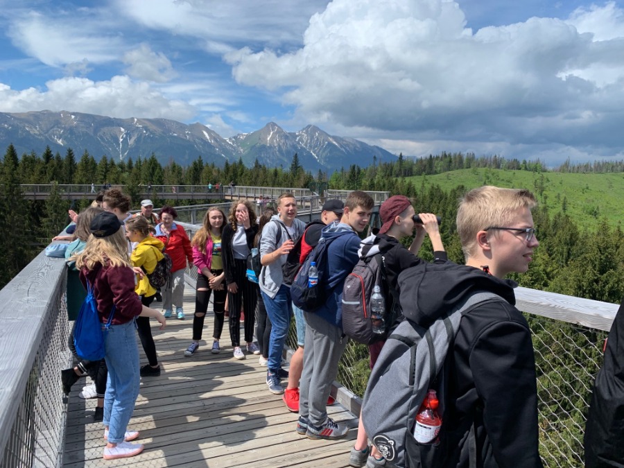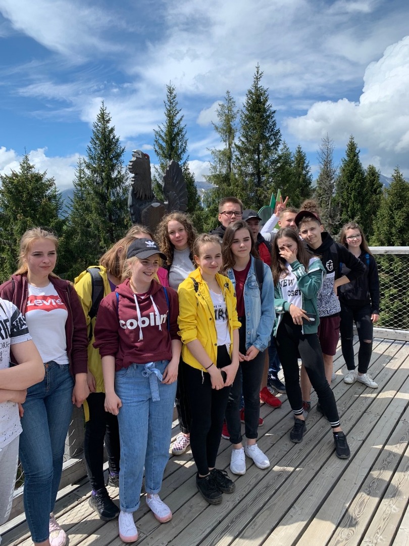 Po przekroczeniu słowackiej granicy oficjalnie rozpoczęła się dla nas nowa, a zarazem najlepsza przygoda. Jako pierwszy w planach był spacer w koronach drzew. Dotarliśmy tam bardzo zmęczeni przez przebytą odległość, lecz niedługo po prostu zachwycaliśmy się wspaniałym widokiem. Później udaliśmy się do Tatrzańskiej Kotliny i niezwykłej Jaskini Bielańskiej, gdzie mogliśmy podziwiać piękno natury. Na sam koniec dnia udaliśmy się do ośrodka, gdzie wieczorem wraz z opiekunami urządziliśmy ognisko.