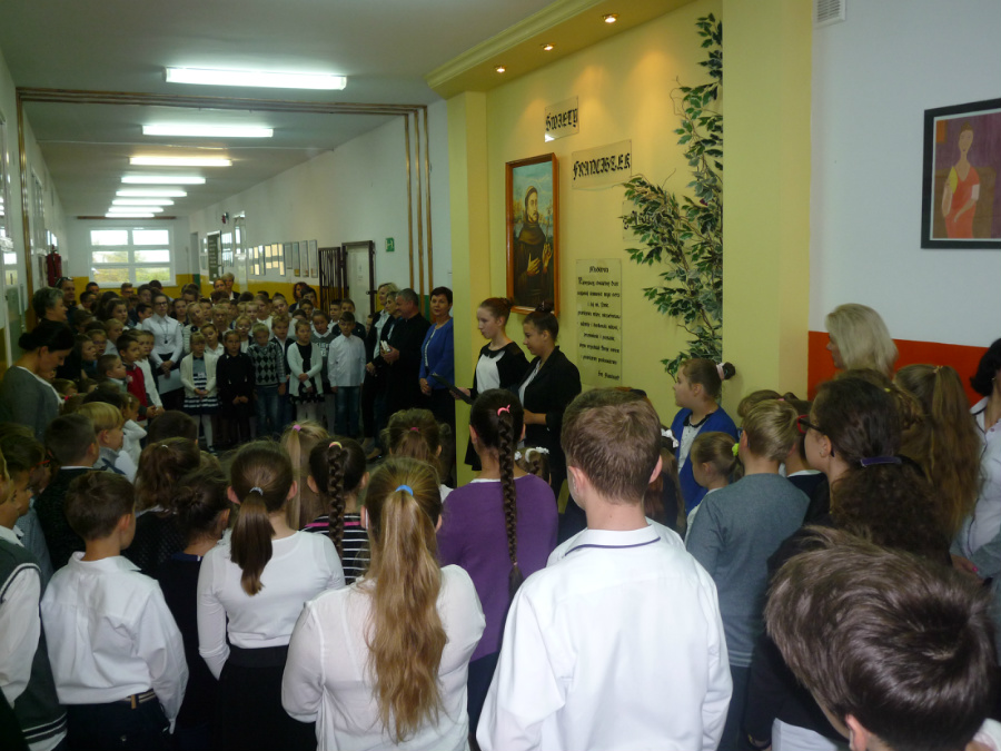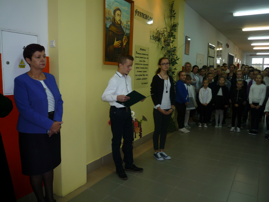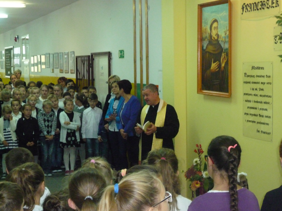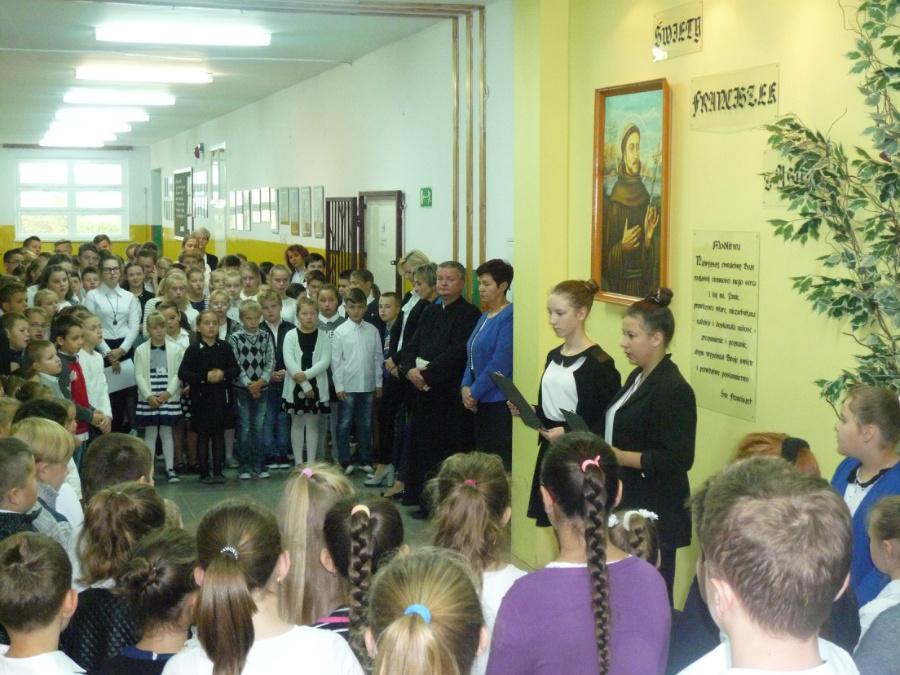 Odśpiewaliśmy hymn, wspomnieliśmy historię świętego, uczennice wyrecytowały piękne wiersze. Ksiądz proboszcz odmówił z nami modlitwę, zawierzając wszystkich opiece naszego Patrona, a następnie śpiewaliśmy piosenki o św. Franciszku. Po krótkim apelu uczniowie rozeszli się do klas, a lekcje minęły szybko, bez kartkówek i sprawdzianów.