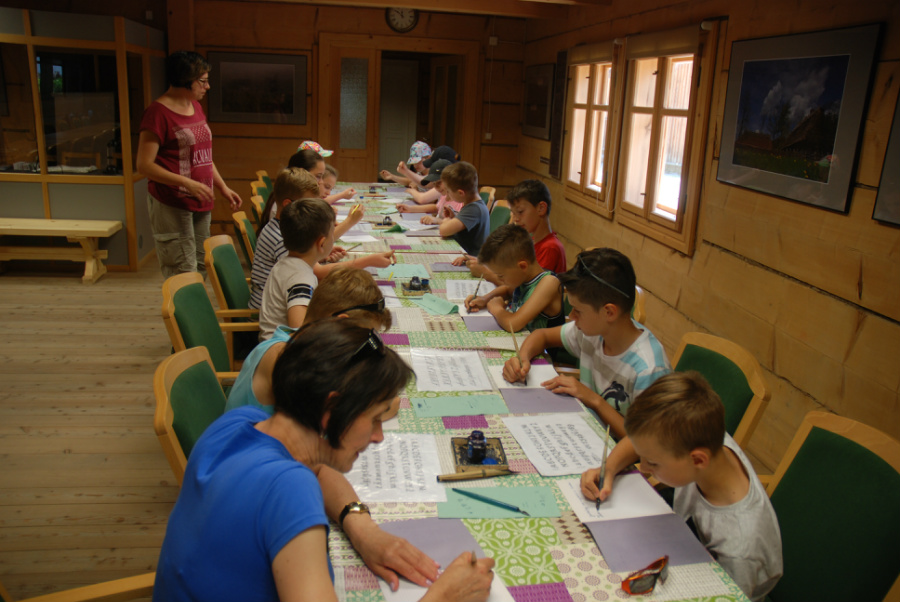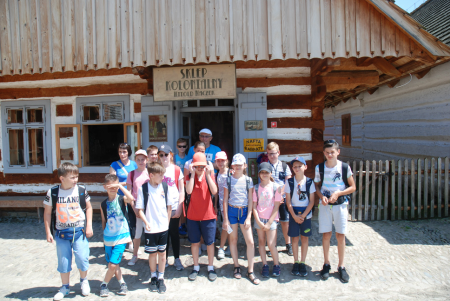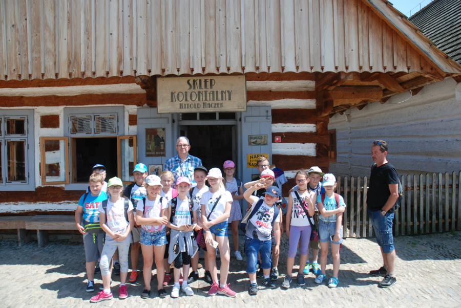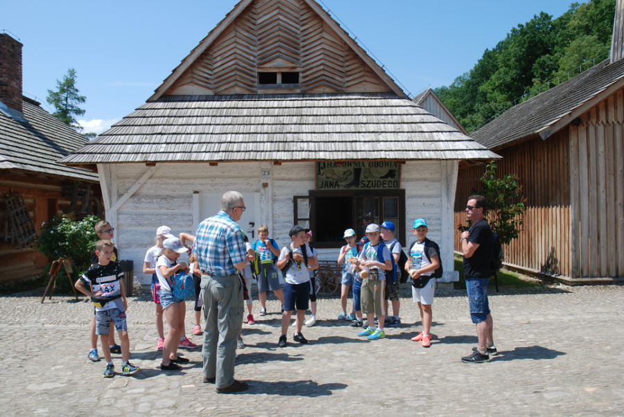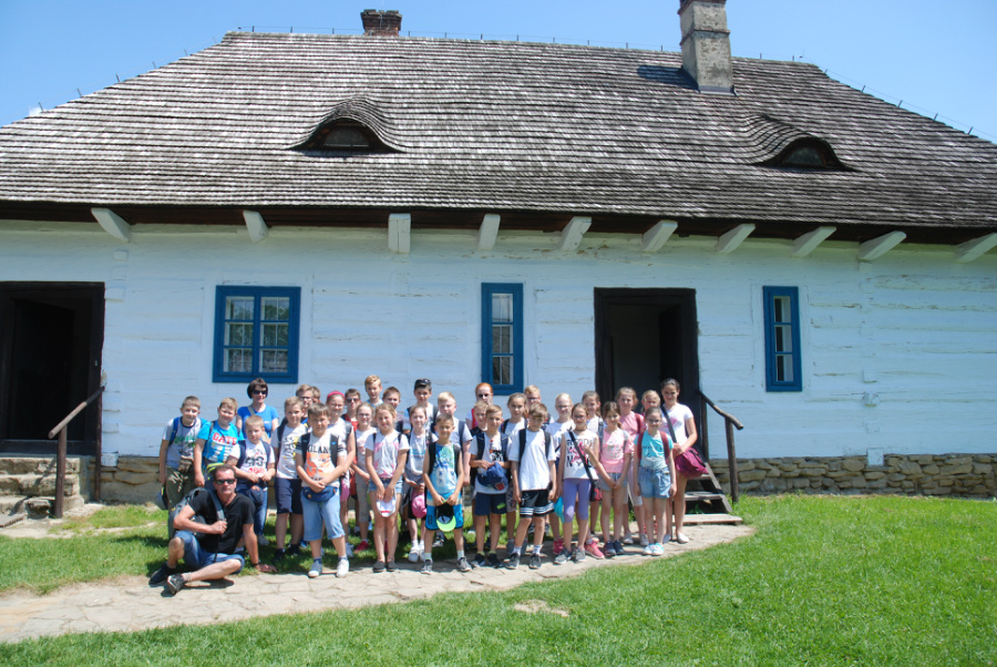 Gdy dotarliśmy na miejsce poszliśmy zwiedzać miasteczko galicyjskie. Mieliśmy tam dwie lekcje: garncarstwa i kaligrafii. Na pierwszych zajęciach dowiedzieliśmy się jak lepić garnki z gliny, lepiliśmy różne figurki. Na lekcji kaligrafii uczyliśmy się ładnego pisania piórem. Dowiedzieliśmy się jak dawniej żyły dzieci jak wyglądały ich przybory szkolne. Po zajęciach wraz z przewodnikiem Stanisławem Koniecznym wyruszyliśmy na zwiedzanie skansenu podczas, którego dowiedzieliśmy się wielu ciekawych rzeczy. I właśnie na tym zakończyła się nasza wycieczka.