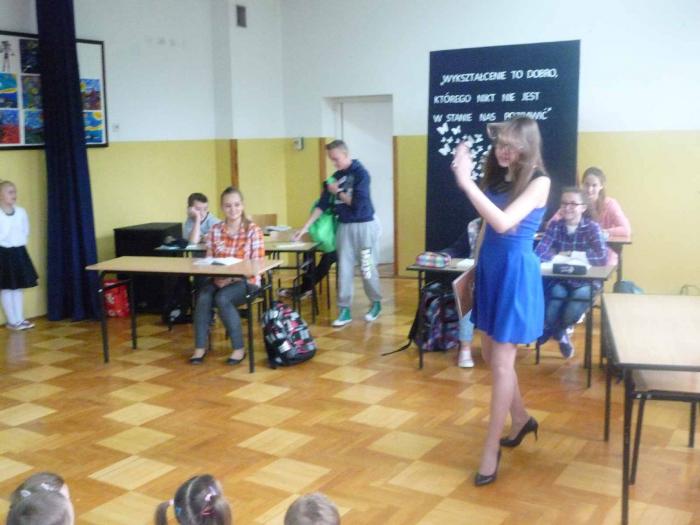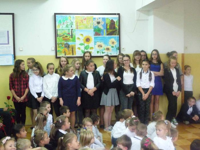 Miała ona na celu pokazanie, że w szkole można miło spędzić czas. Na koniec uroczystości chór szkolny zaśpiewał piosenkę,w której przekazał życzenia nauczycielom. W tym czasie uczniowie rozdawali piękne róże swoim opiekunom.