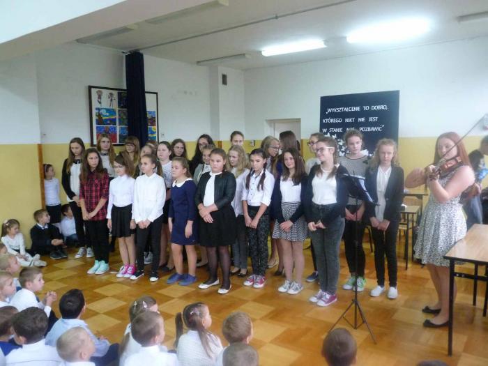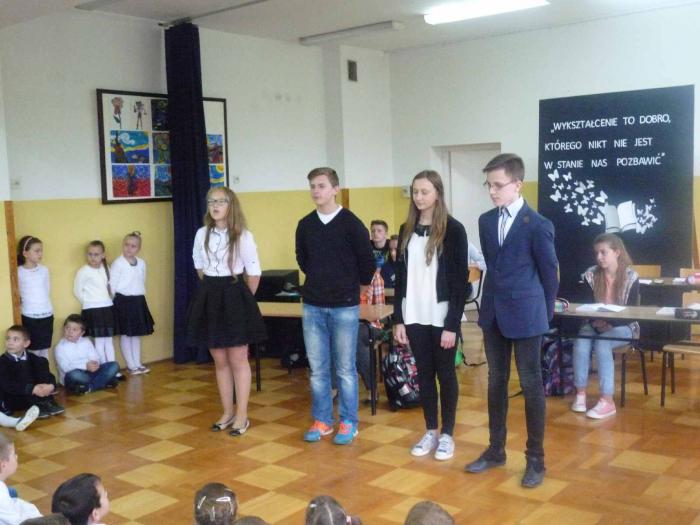 13 października 2016r. odbyła się akademia z okazji Święta Edukacji Narodowej. Wszyscy uczniowie przyszli odświętnie ubrani. Klasa I i II gimnazjum przygotowała scenkę, która wprowadziła widzów w dobry nastrój.
