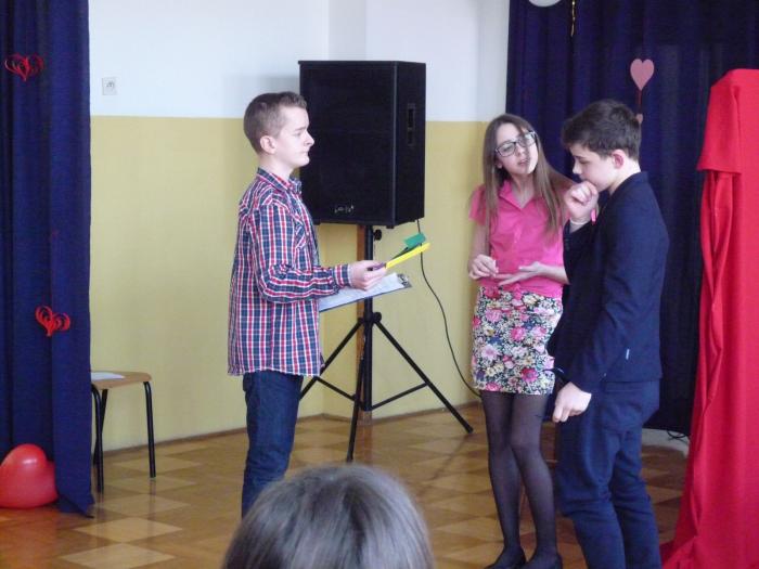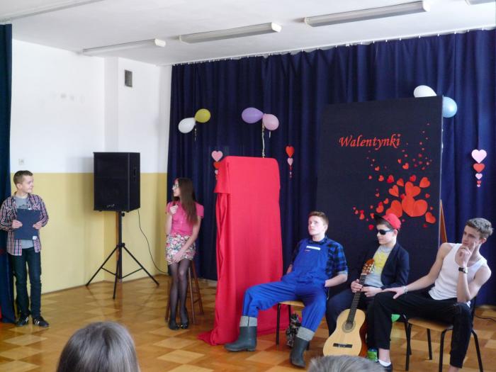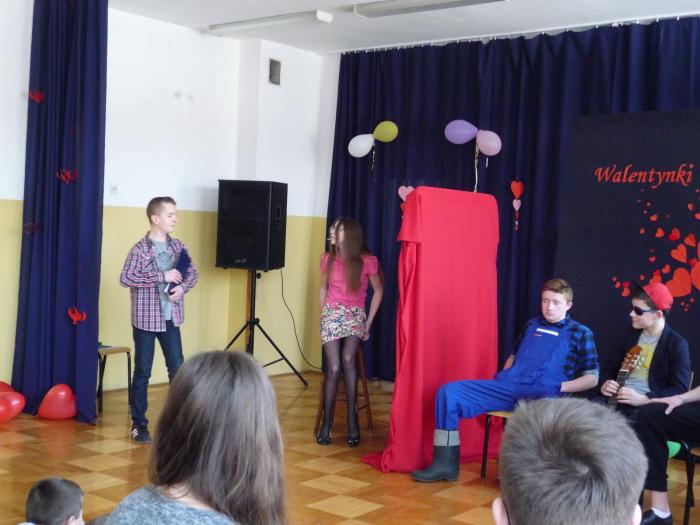 14 lutego to dzień wszystkich zakochanych. Nazwa święta pochodzi od imienia świętego Walentego- patrona zakochanych. W tym dniu ludzie obdarowują się drobnymi upominkami, wysyłają sobie "walentynki". Również w naszej szkole były rozdawane walentynki, otrzymali je nauczyciele oraz osoby, które skrycie podkochują się w koledze/koleżance. Nie zabrakło przy tym śmiechu i zabawy. Tego dnia uczniowie gimnazjum przedstawili przedstawienie pełne humoru pt. „Randka w ciemno”.
