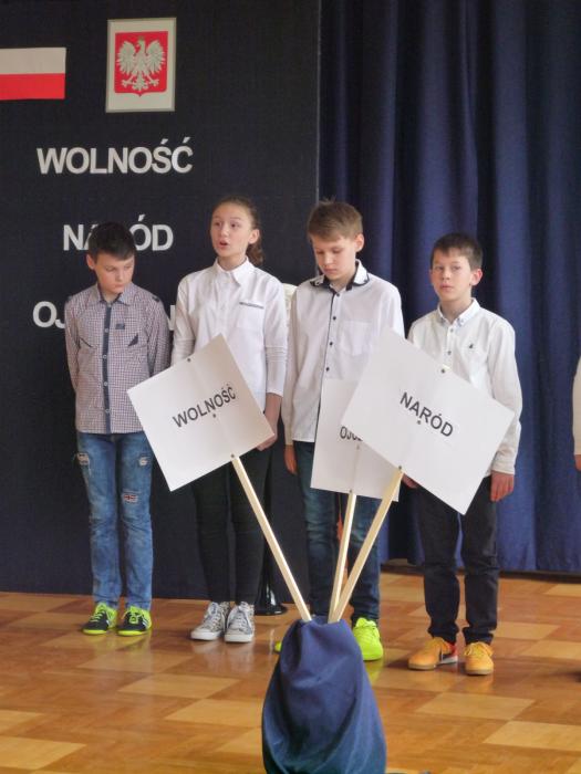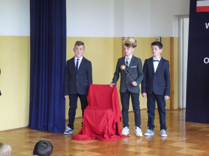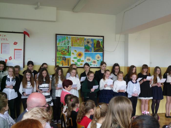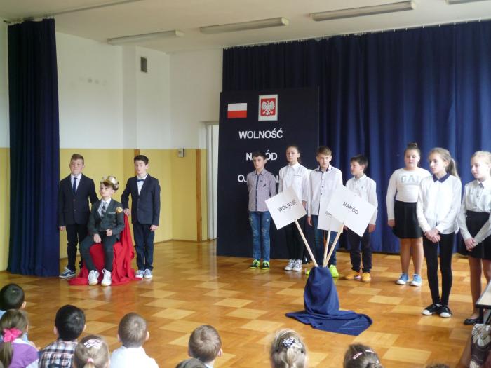 Uczniowie klasy IV i V oraz chórek szkolny przygotowali i zaprezentowali piękne wiersze, krótką scenkę z udziałem króla, przypominającą pracę Sejmu Czteroletniego oraz znane lub mniej znane pieśni.