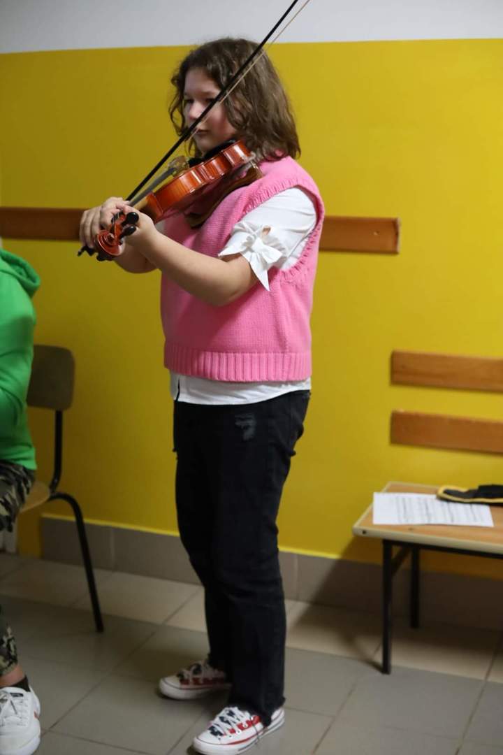 Podczas przerw na szkolnym korytarzu rozbrzmiewały instrumentalne utwory w wykonaniu naszych koleżanek: Łucji Bartnik (wiolonczela), Dagmary Krawiec (skrzypce) i Wiktorii Dąbek (gitara).